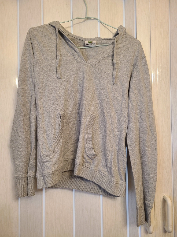 Lacoste Long-sleeved grey hoodie with v neck. size is maybe xs or small