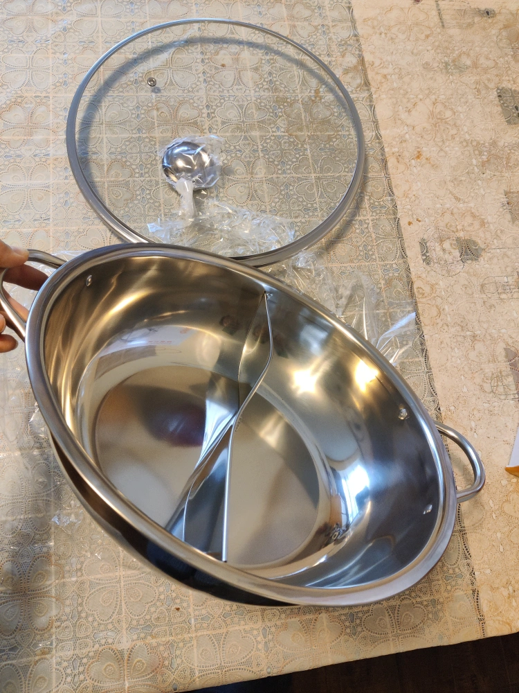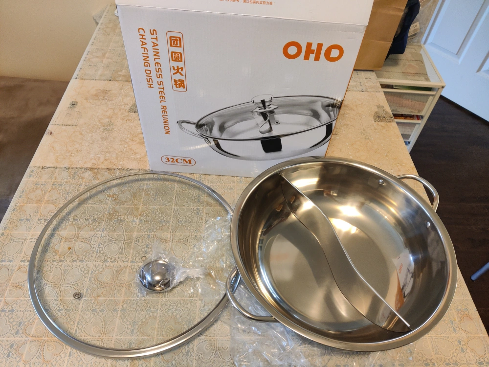 brand new 32cm Stainless steel hotpot dish with a glass lid. The dish has a divider down the middle to separate food items. The lid has a knob in the centre. two available From a no pet non smoking home Meetup near Finch and Yonge Cash only Please check other listings on my profile :)