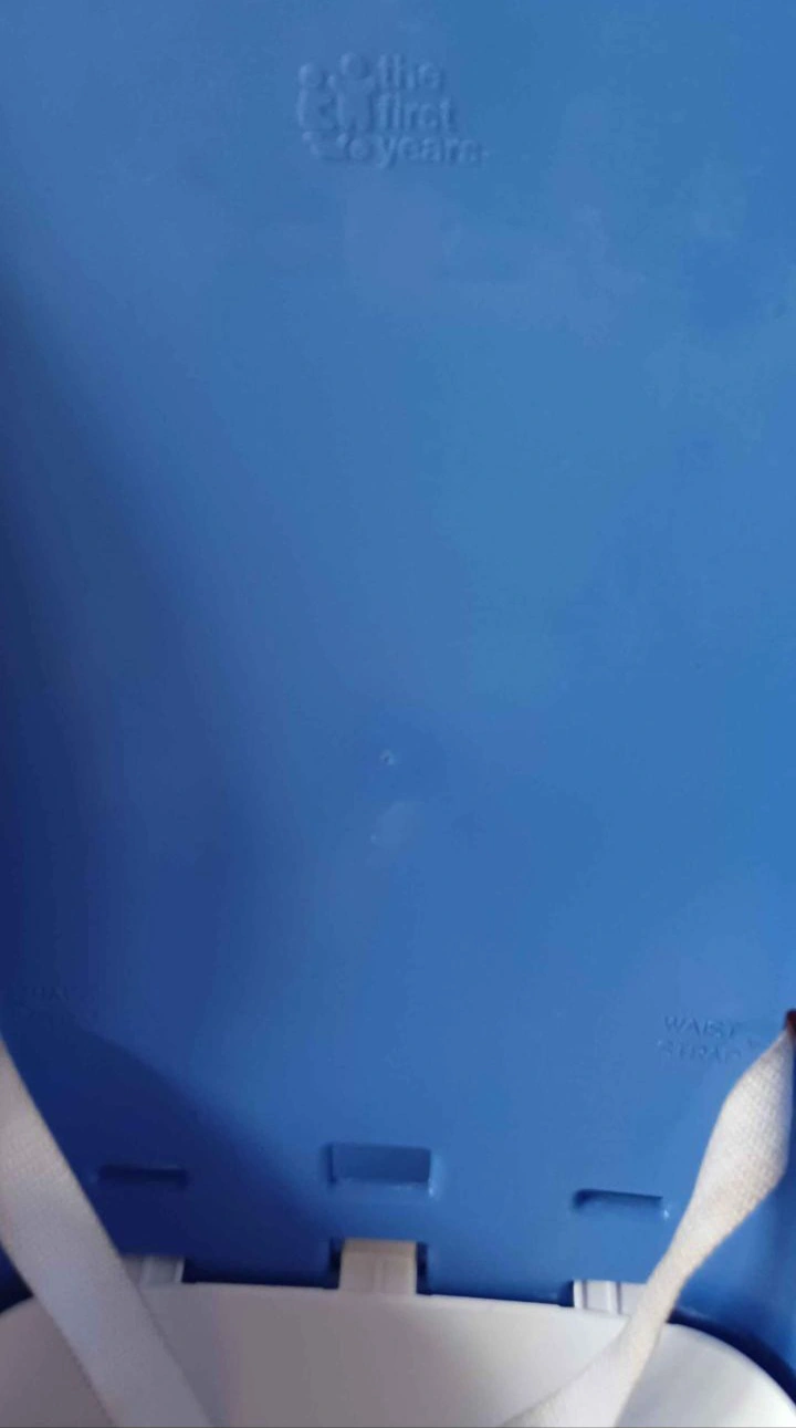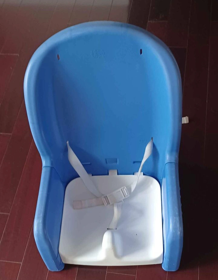 Blue and white booster seat with straps. Used but in good condition.