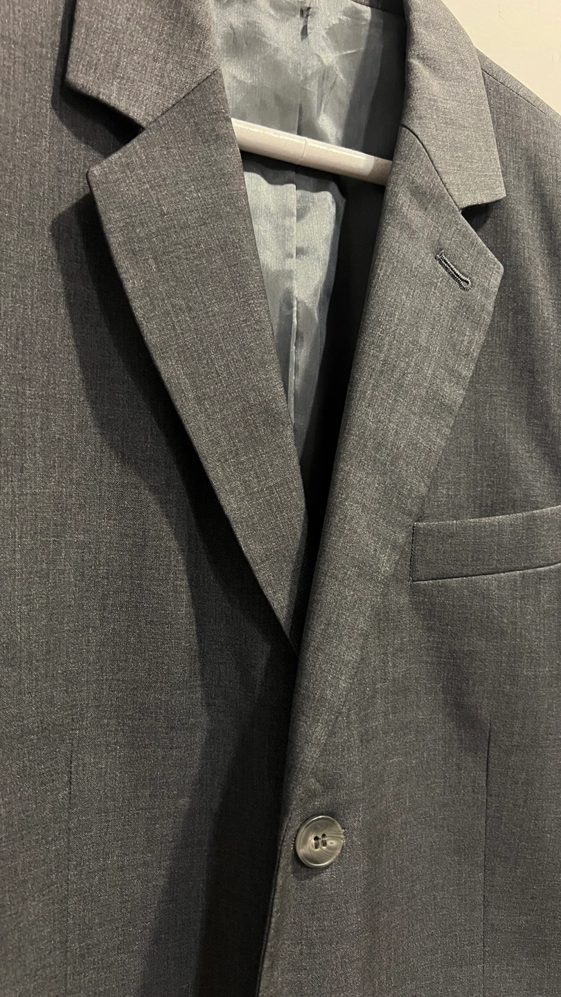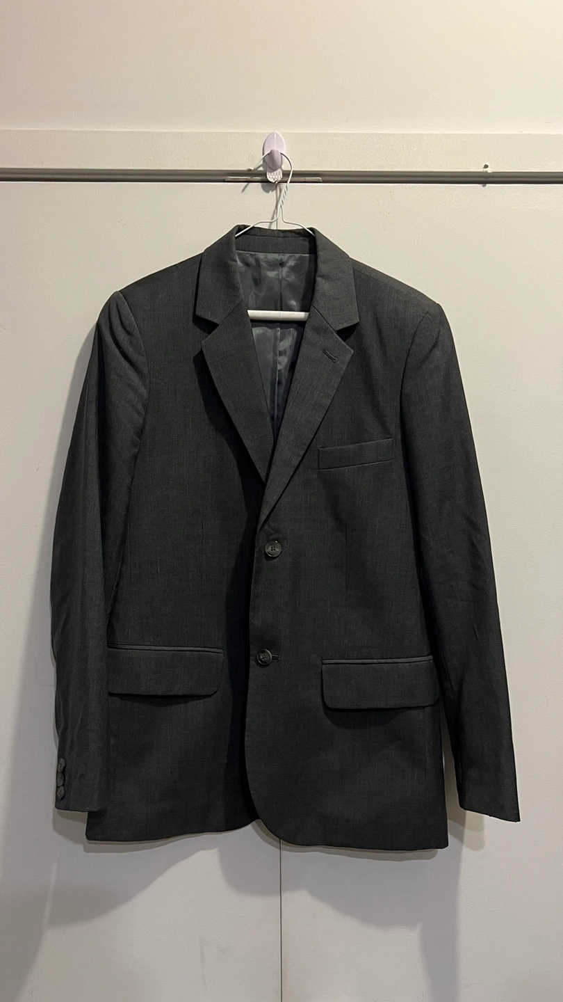 Vintage Grey blazer, size 38, made in France. Two button closure, two pockets on the front.