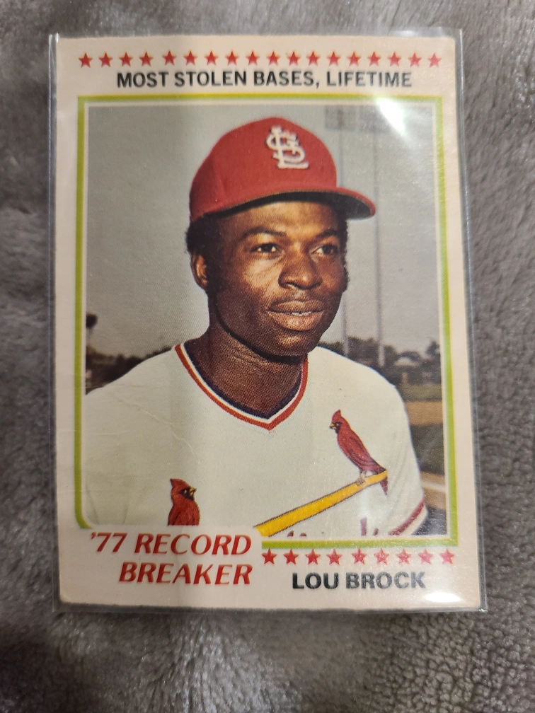Lou Brock 1978 Topps baseball card. '77 Record Breaker. Card is in good condition.