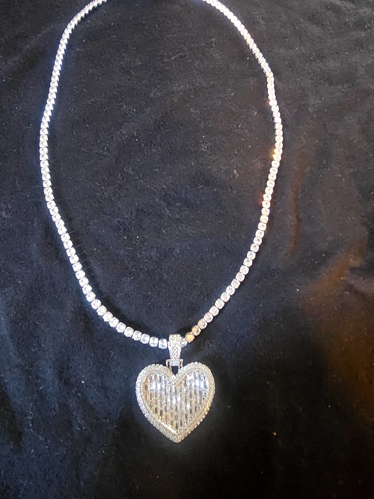 necklace with a large heart pendant.