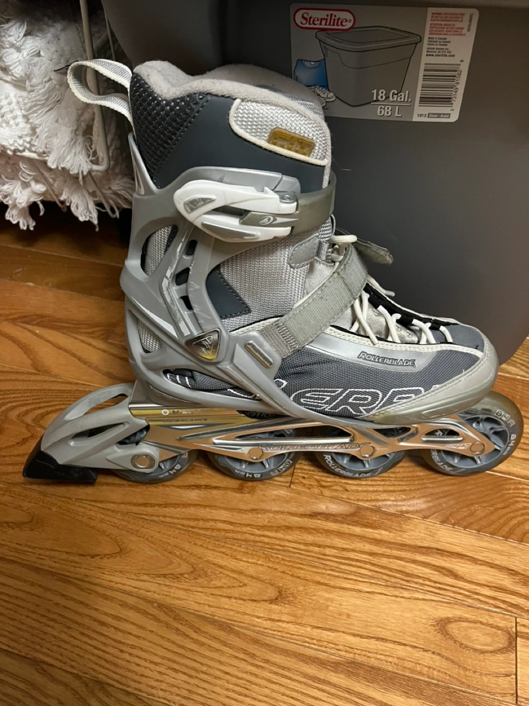 Inline skates. Women’s Size 7. Grey. Used, good condition. Pick up by Keele and Rogers Cash only Roller blades, inline skates