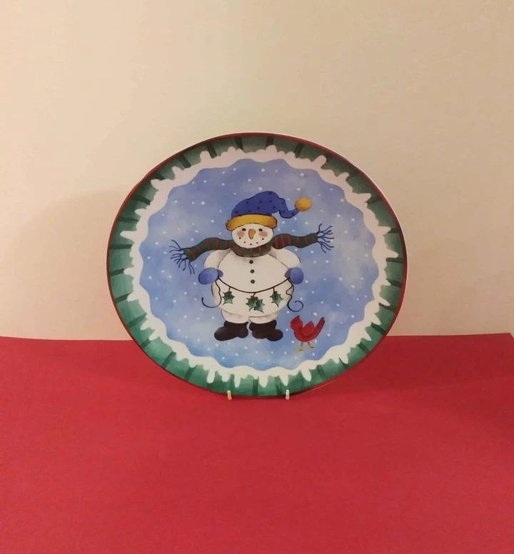 A beautiful, brand new, round ceramic platter with a snowman and robin design. This good quality serving dish is heavy. Size: 12.5" diameter Payment: Cash or e-Transfer. Item available for pick up near Celebration Square in Mississauga Square One.