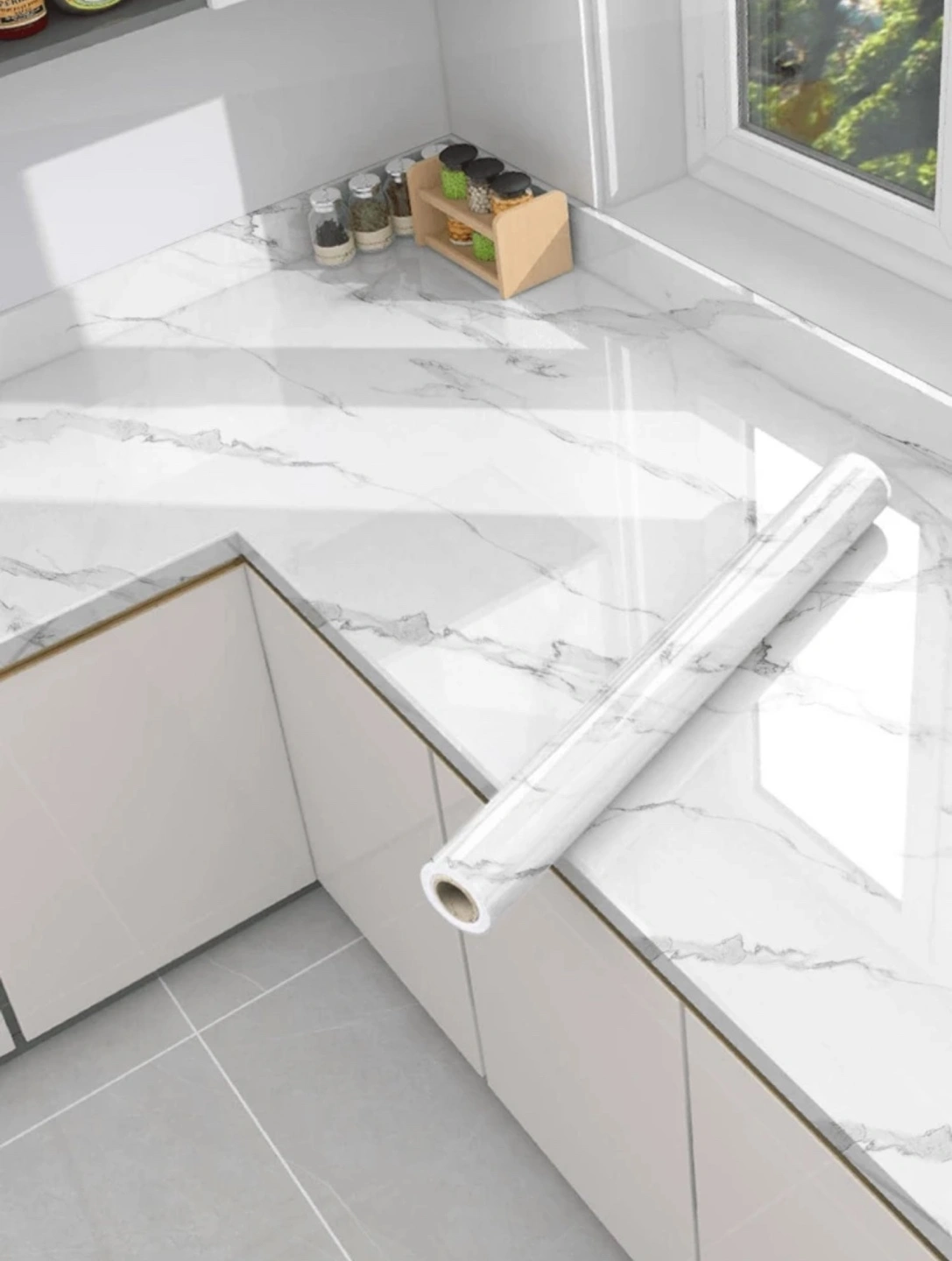 Self-adhesive contact paper. Marble print. New and sealed in plastic