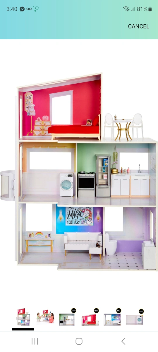 MGA Entertainment Rainbow High House Playset- 3-Story Wood Doll House (4-ft Tall and 3-FT Wide), Fully Furnished with Working Hot Tub, Shower, Sink, Elevator, and 50+ Accessories