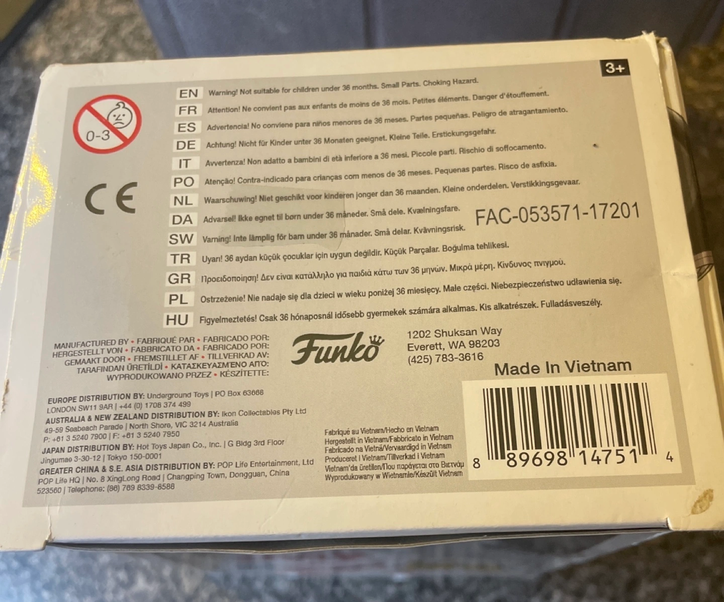 New in box, never opened. Pop! Vinyl collectible. Box is a little worn. $10 if you want to buy. See trades below. Bug free, 3 cat household. No smoking in household. Pickup only.