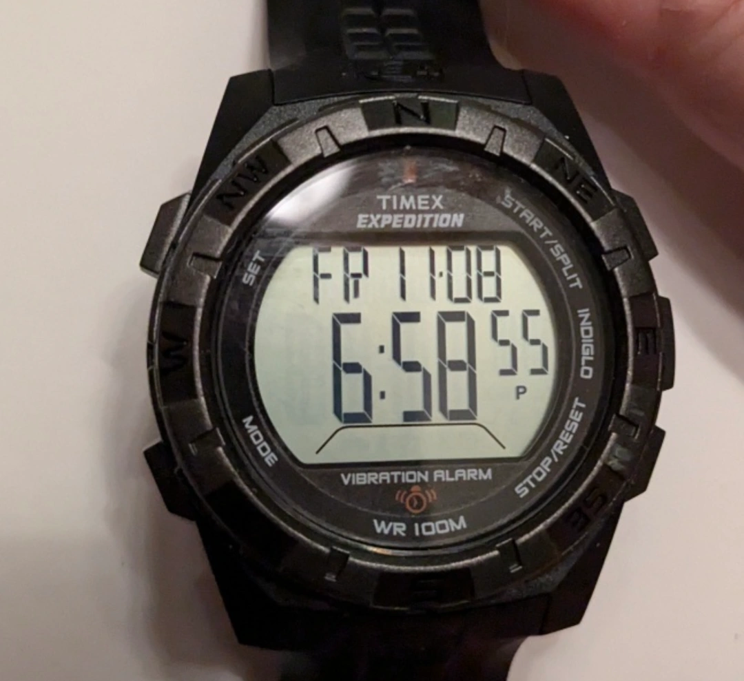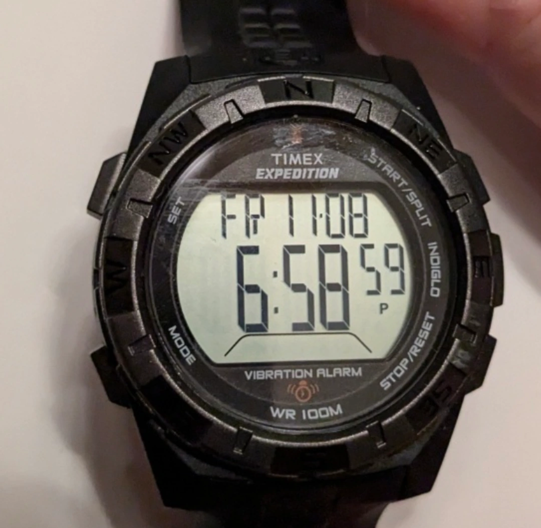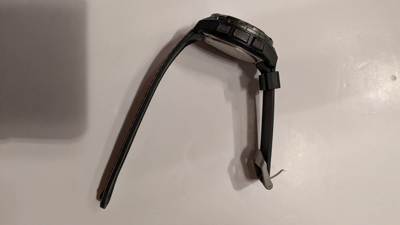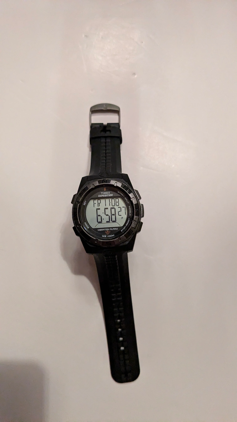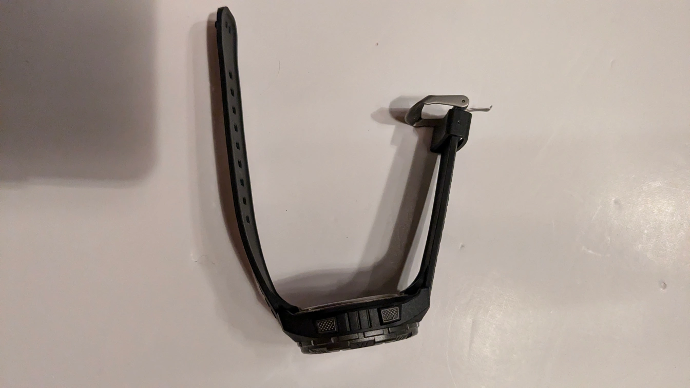 This is a fabulous very tough old school watch. It does not need to be recharged every other day like more modern watches. The battery lasts for a very long time. This is water resistant for up to 100 m. It is an excellent training watch. unlike modern watches, there are no "sensor" lights that can make your wrist sore if worn for too long. The wristband is an excellent condition. made to last and made by the best Thank you for looking at our listing. We always welcome questions . From a smoke-free home