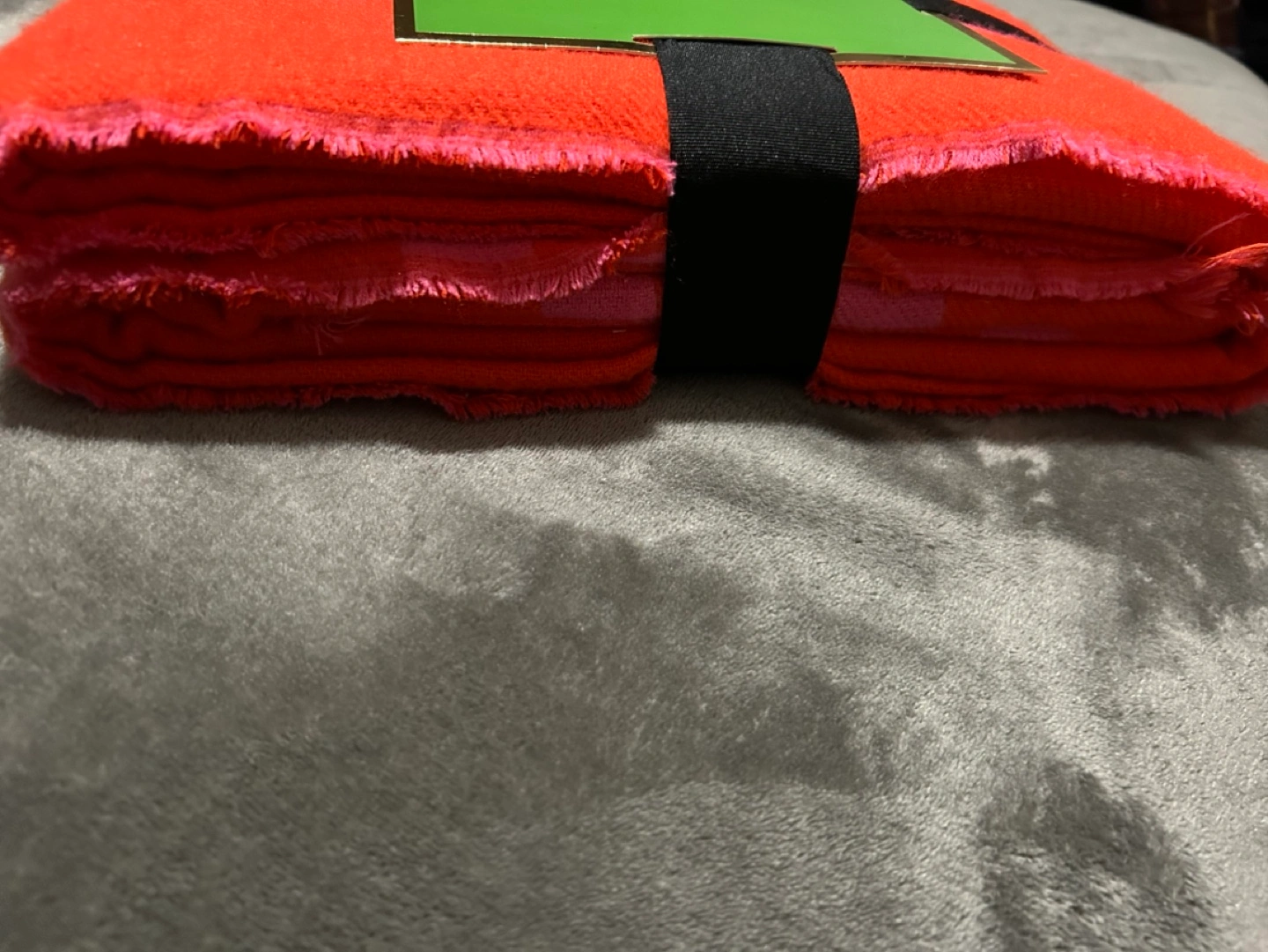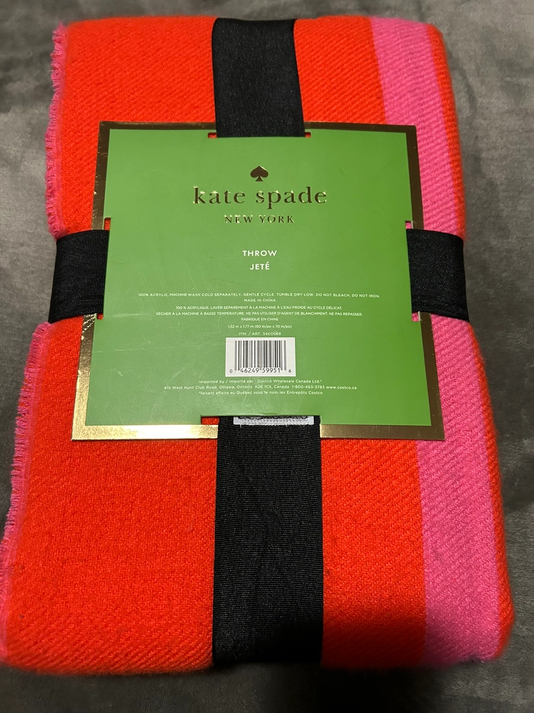 Orange and pink, striped throw blanket. New with tags. Soft and cozy.