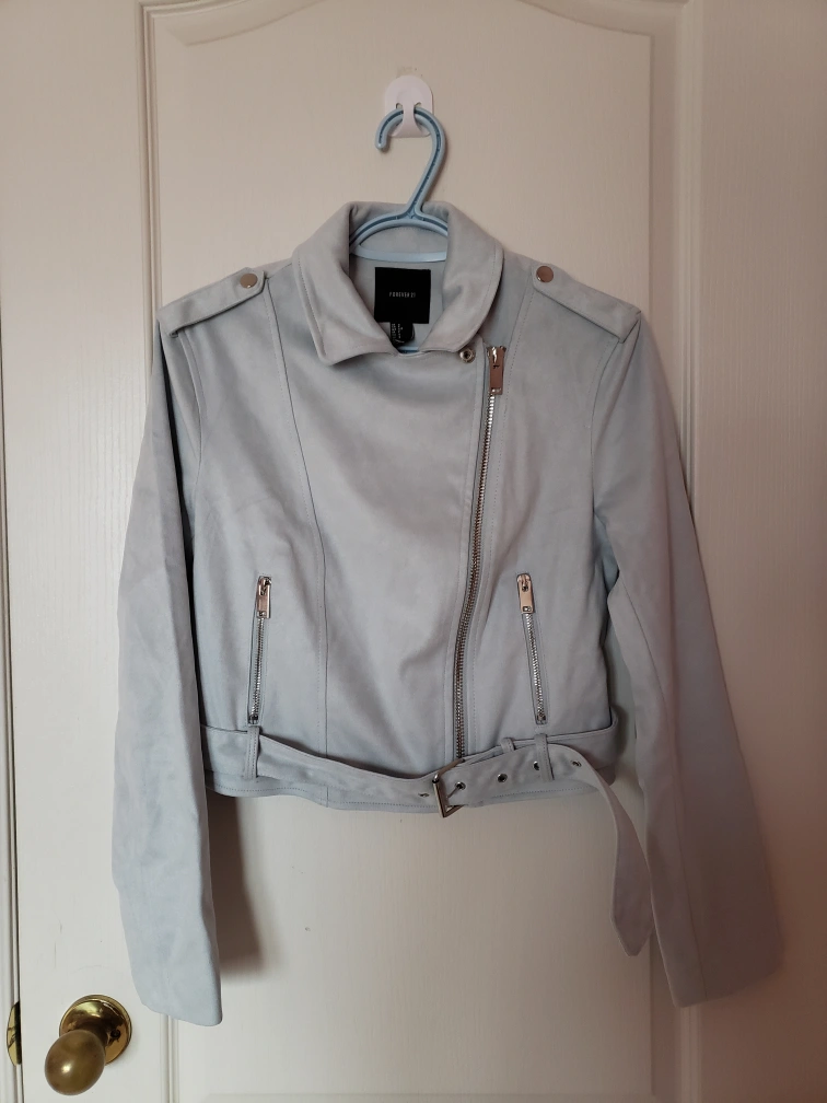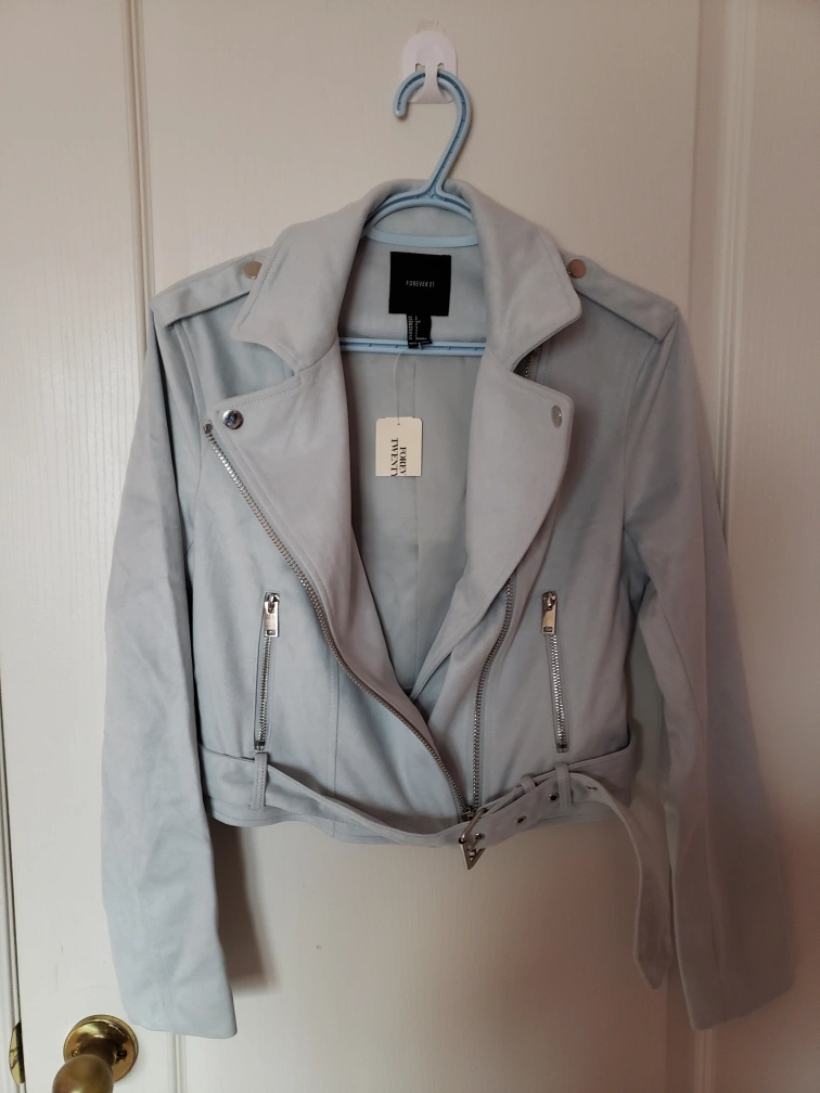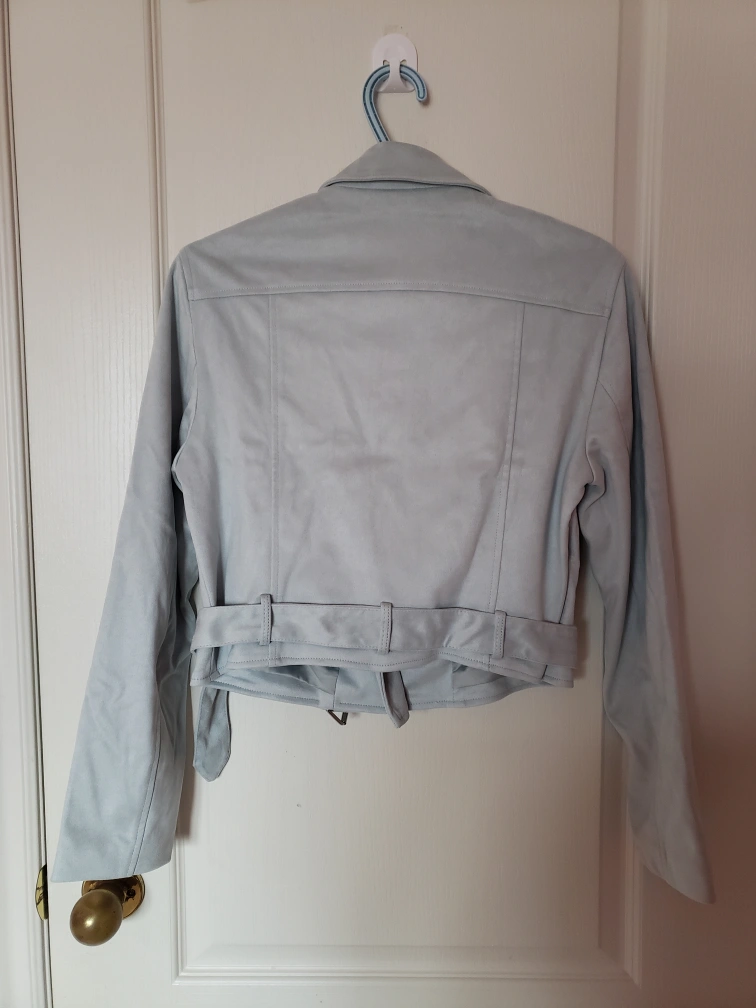 Stylish jacket features a belt, diagonal zipper & zipped side pockets Brand new, in excellent condition and with its original tag Hoping the item finds a new home! From a smoke-free & pet-free home Cash only & exact change All sales are final; no refunds or reservations Pick-up only Location: Richmond Hill Serious inquries only; messaging only through Karrot Thank you for your interest & please check my 200+ listings for more!