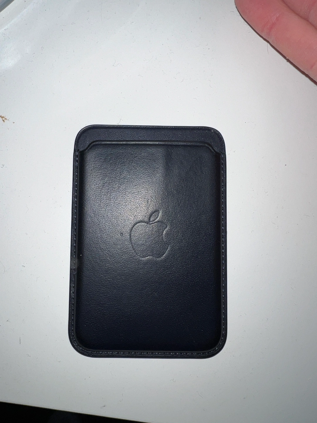 Apple Navy blue MagSafe wallet for iPhone. Original couple of uses only. No scratches not stains. Retails for $79 before taxes! Pick up downtown only