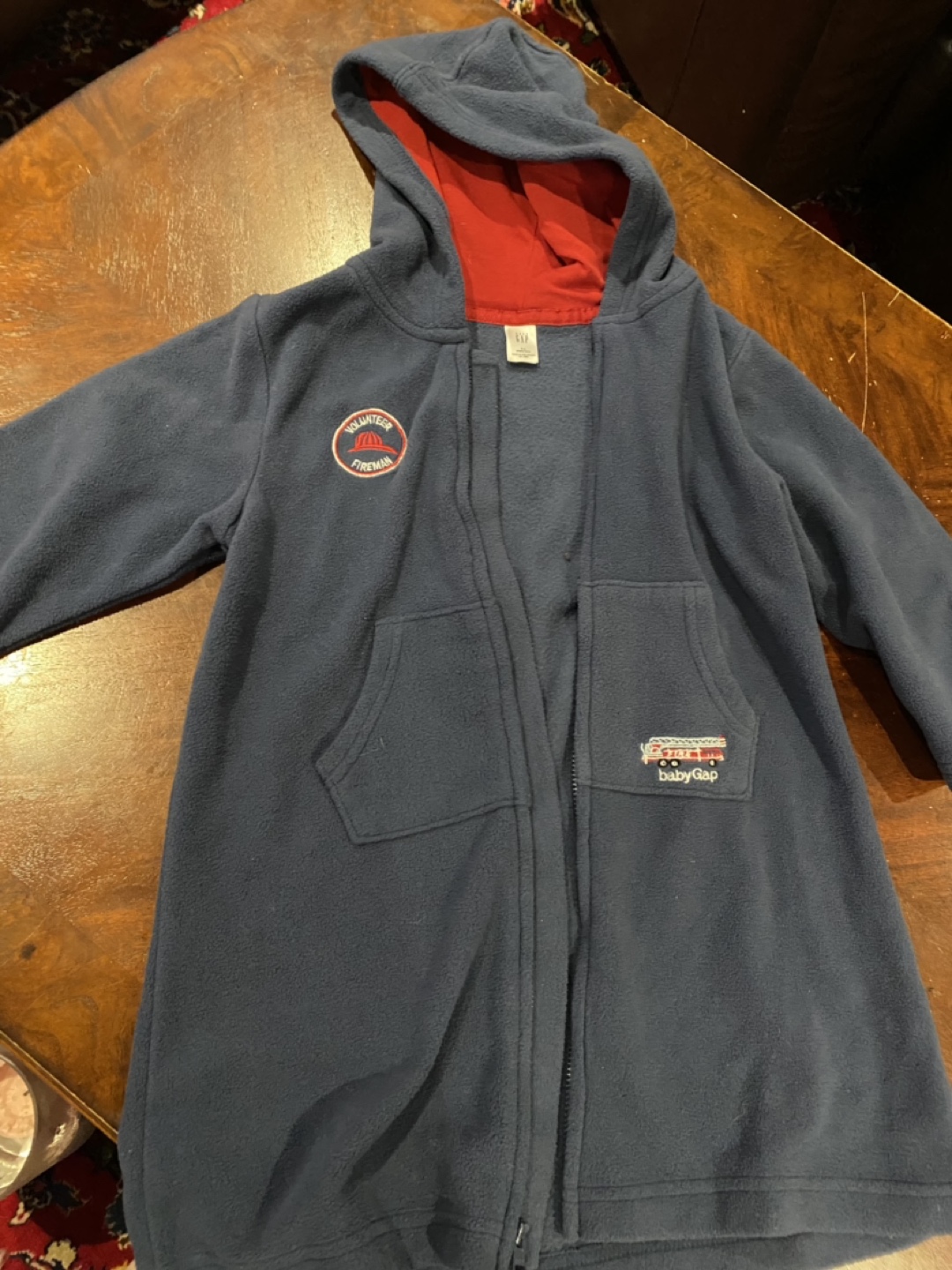 Toddler boys hooded robe size 2-3 yrs / fire engine theme