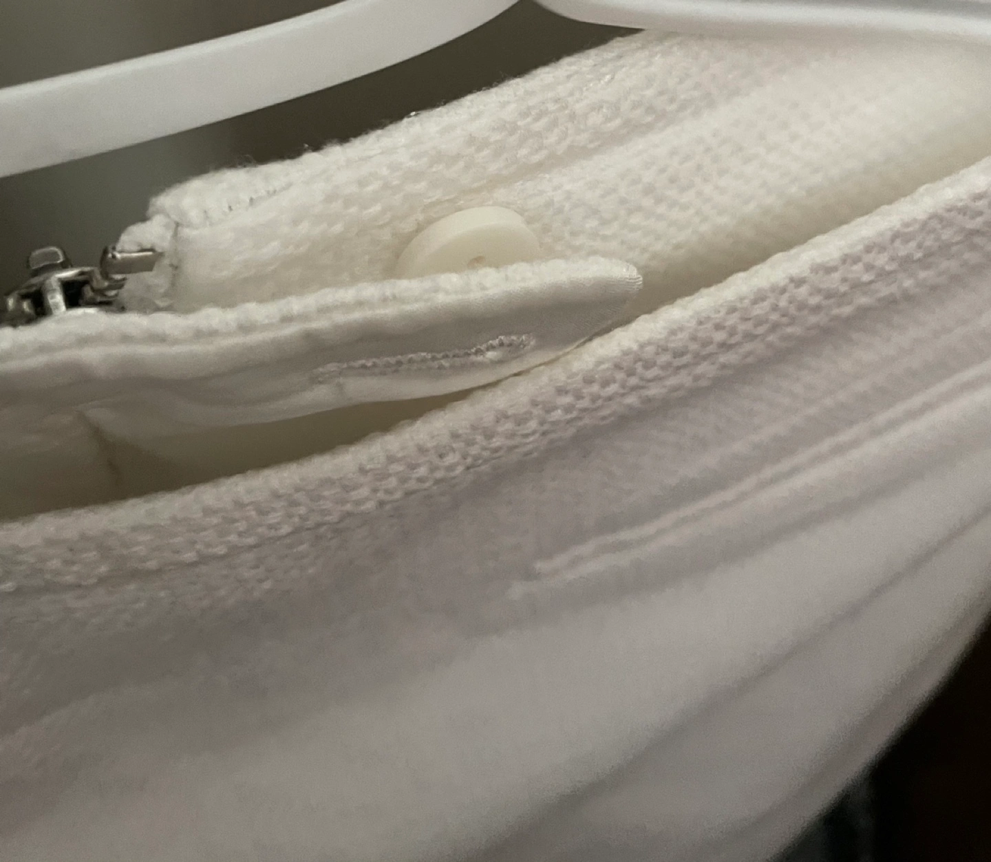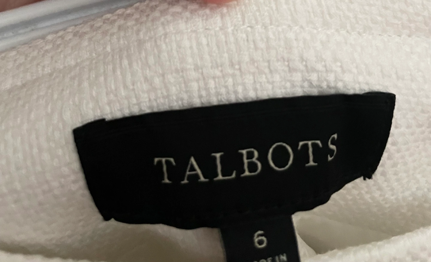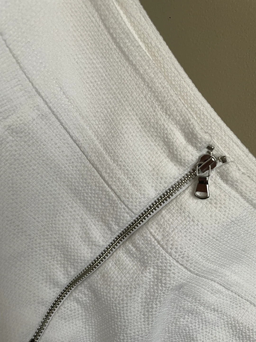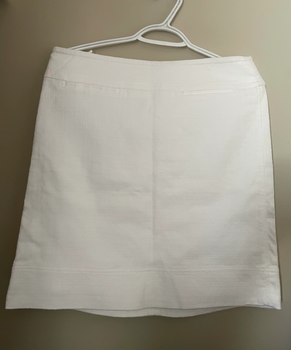 White skirt with a zipper and a button closure. Has a pocket on the back. Pu Whitehorn ne Cash or emt
