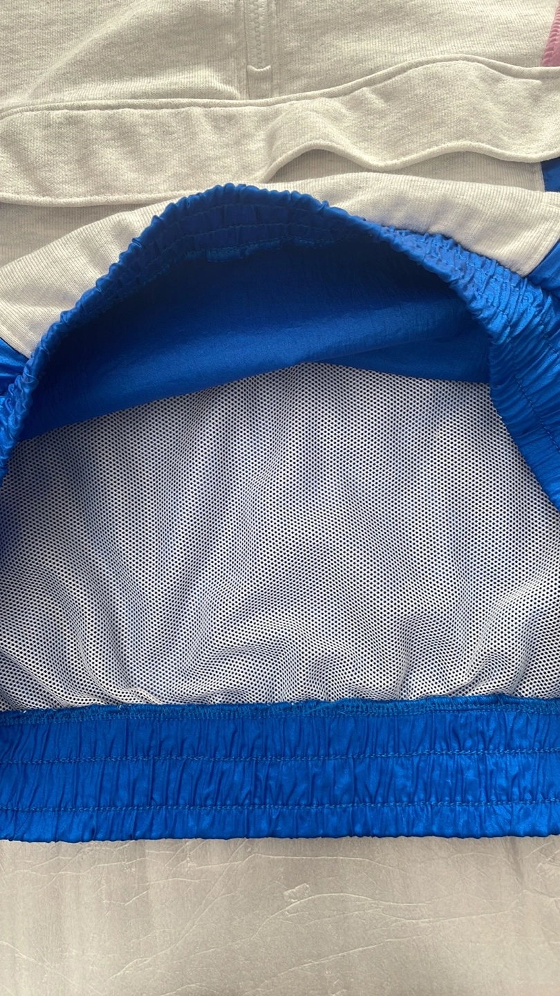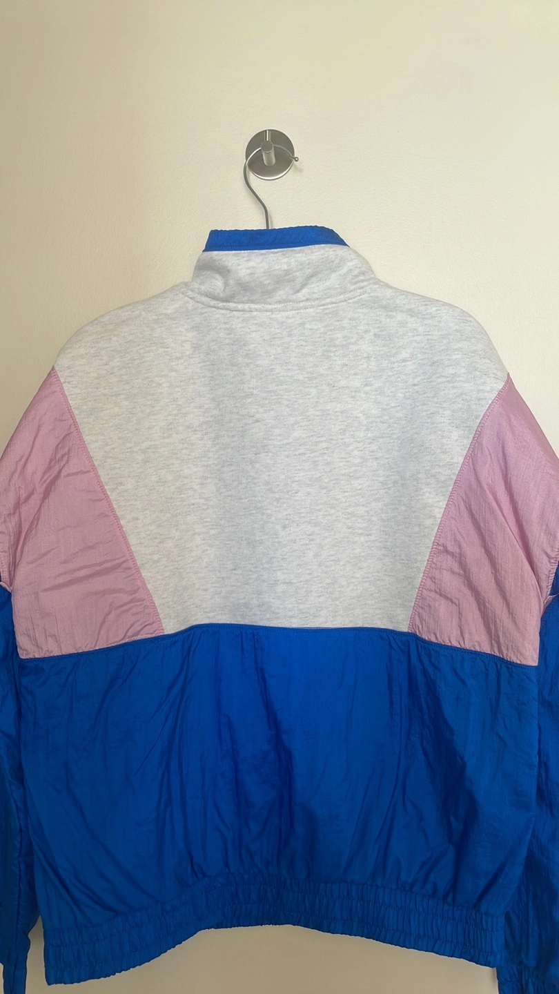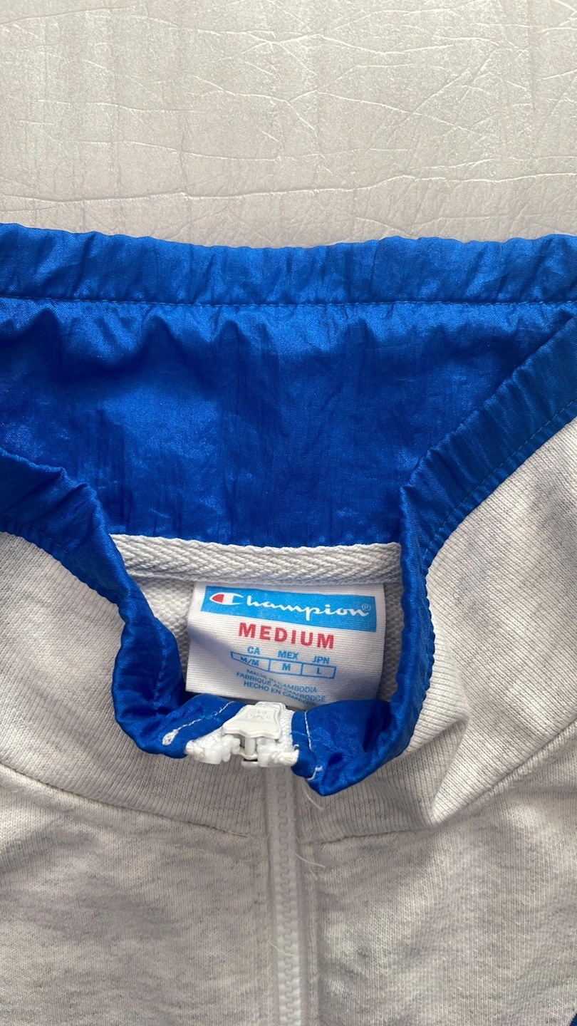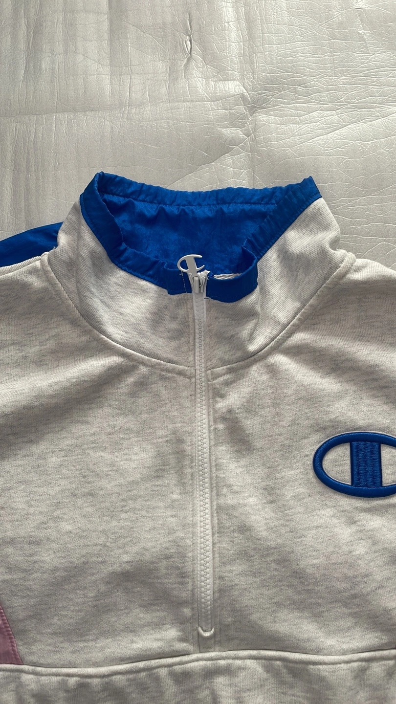 CHAMPION COLOUR BLOCK ZIP UP JACKET (Medium size) PICKUP LOCATION: Scarborough Town Centre Mall only PRODUCT INFO.: ***Condition: 9/10. Almost new! Has been worn once or twice. No rips or stains. Closet clear out. ***Has a very attractive grey, pink and blue colour block design in almost a neon colour scheme! ***Kangaroo pouch pocket ***Zipper closing (until midway) ***Brand logo design in white in the zipper handle ***Netted lining in the bottom half of the jacket for a comfortable wear ***Elastic cuff in the sleeves and bottom hem of the jacket for stretch and warmth in cool weather ***Cotton-Polyester ***Machine washable MEASUREMENTS: Length: 23” (shoulder to hem) Chest Width: 20” (approx.)