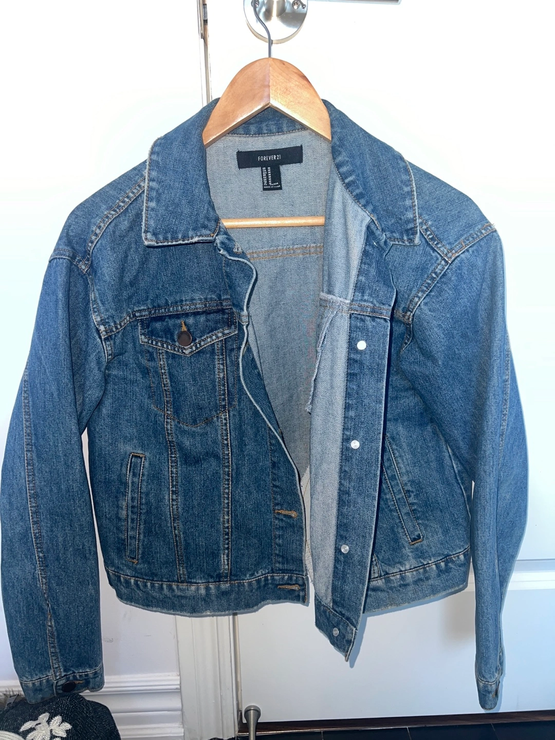 Blue denim jacket. Size medium. Hip length Women style Pick up downtown