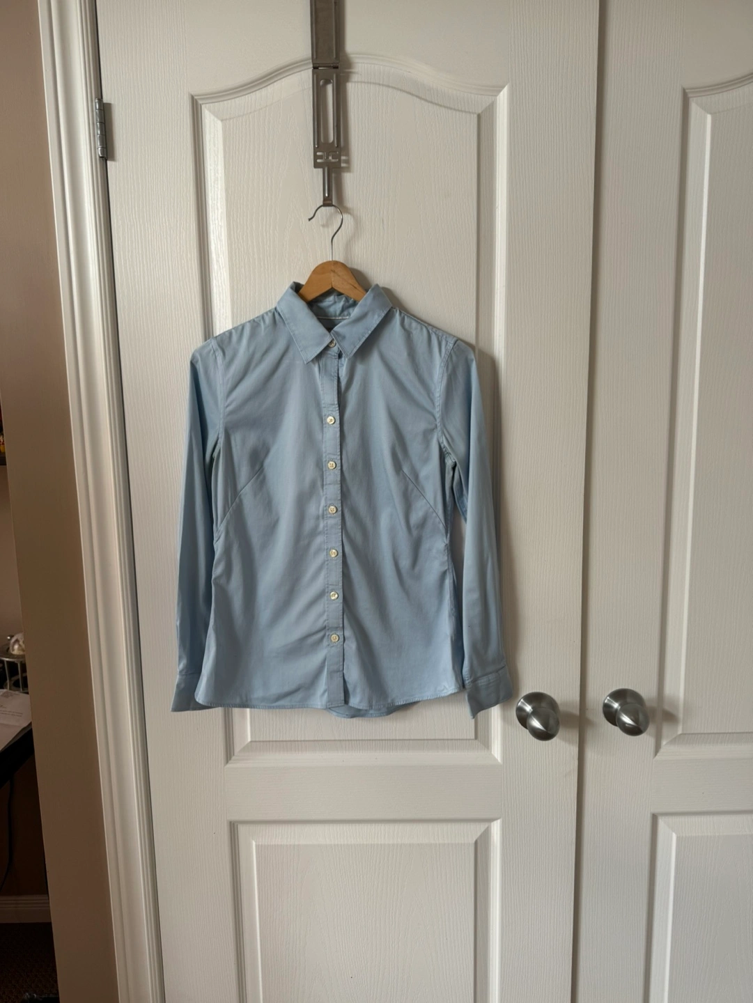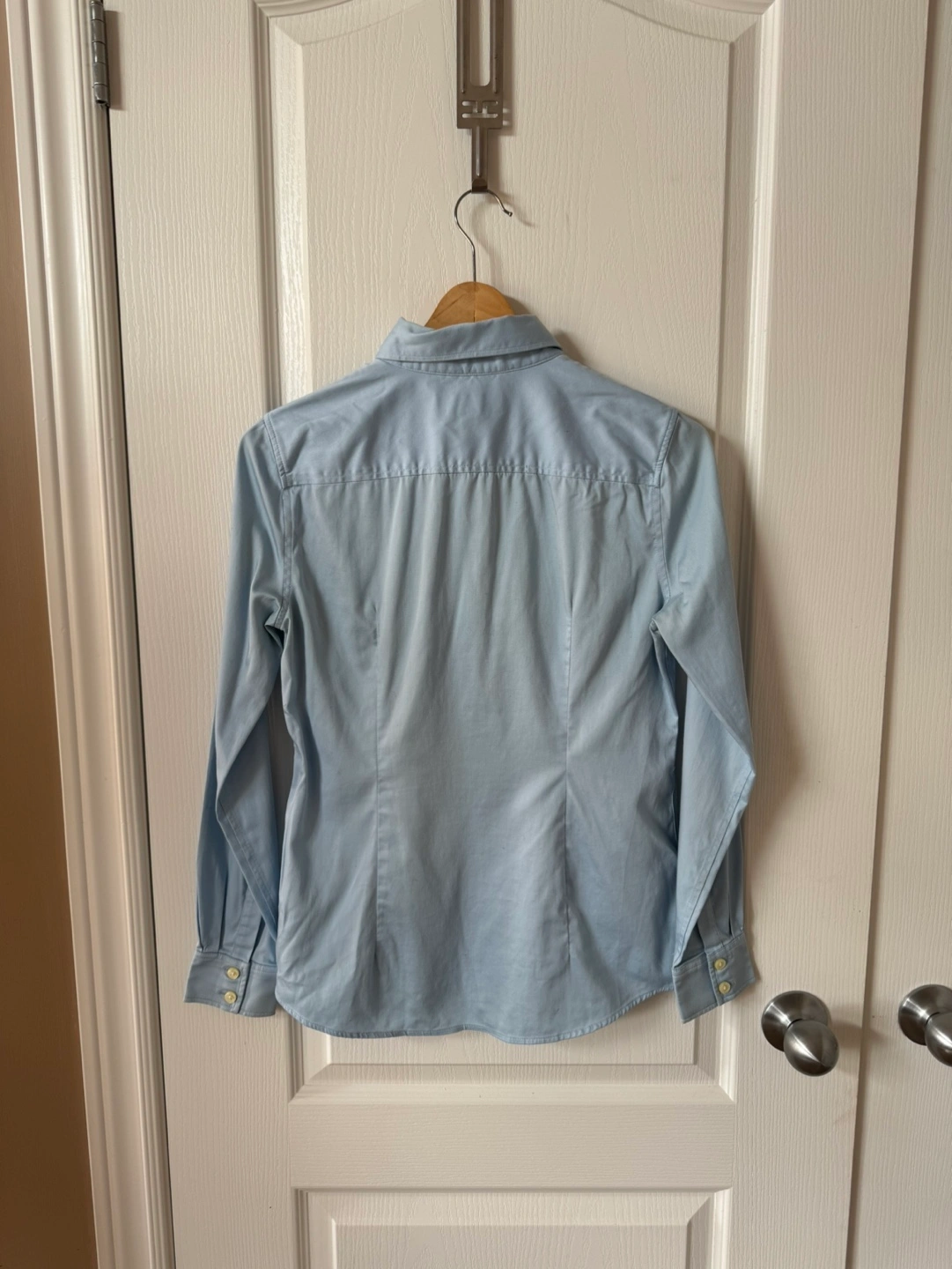 Light blue long sleeve button up shirt. Non-iron. Size 2.