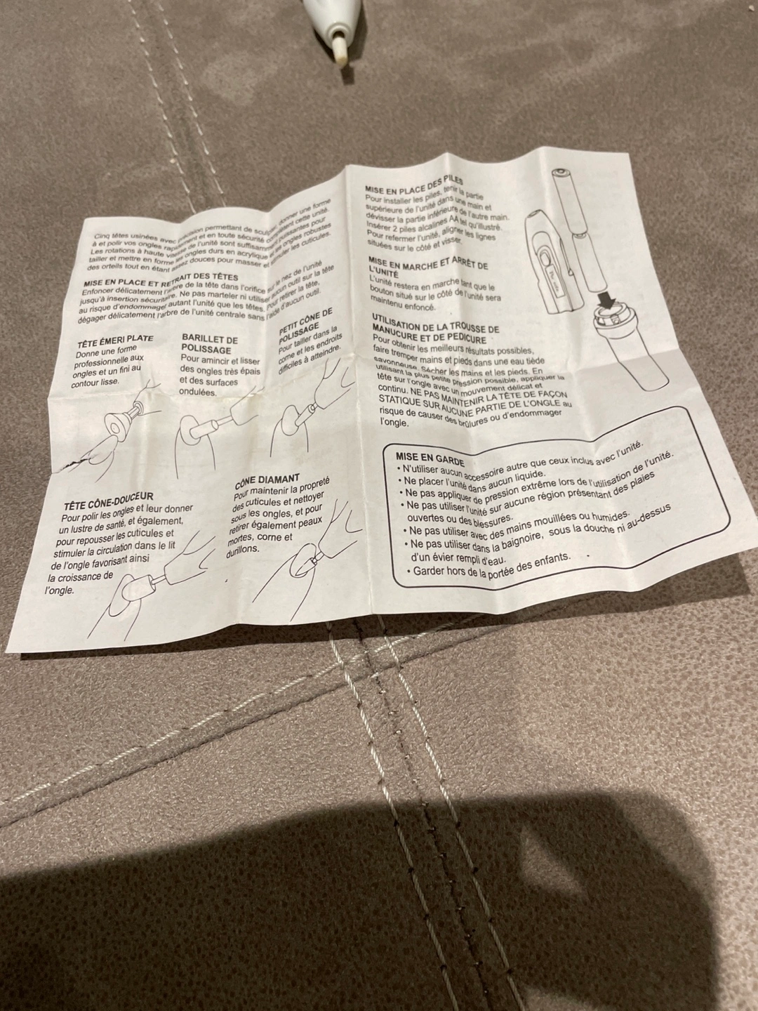Electric nail file with multiple attachments. Battery operated. Comes with two extra attachments.