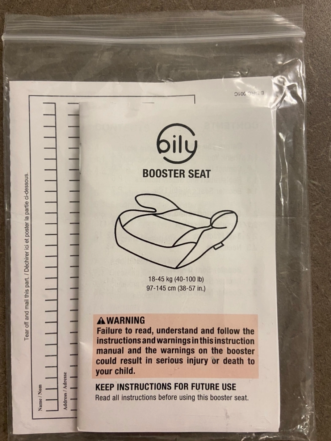 Booster seat, comes with instructions. Manufacture date: 07/25/2023