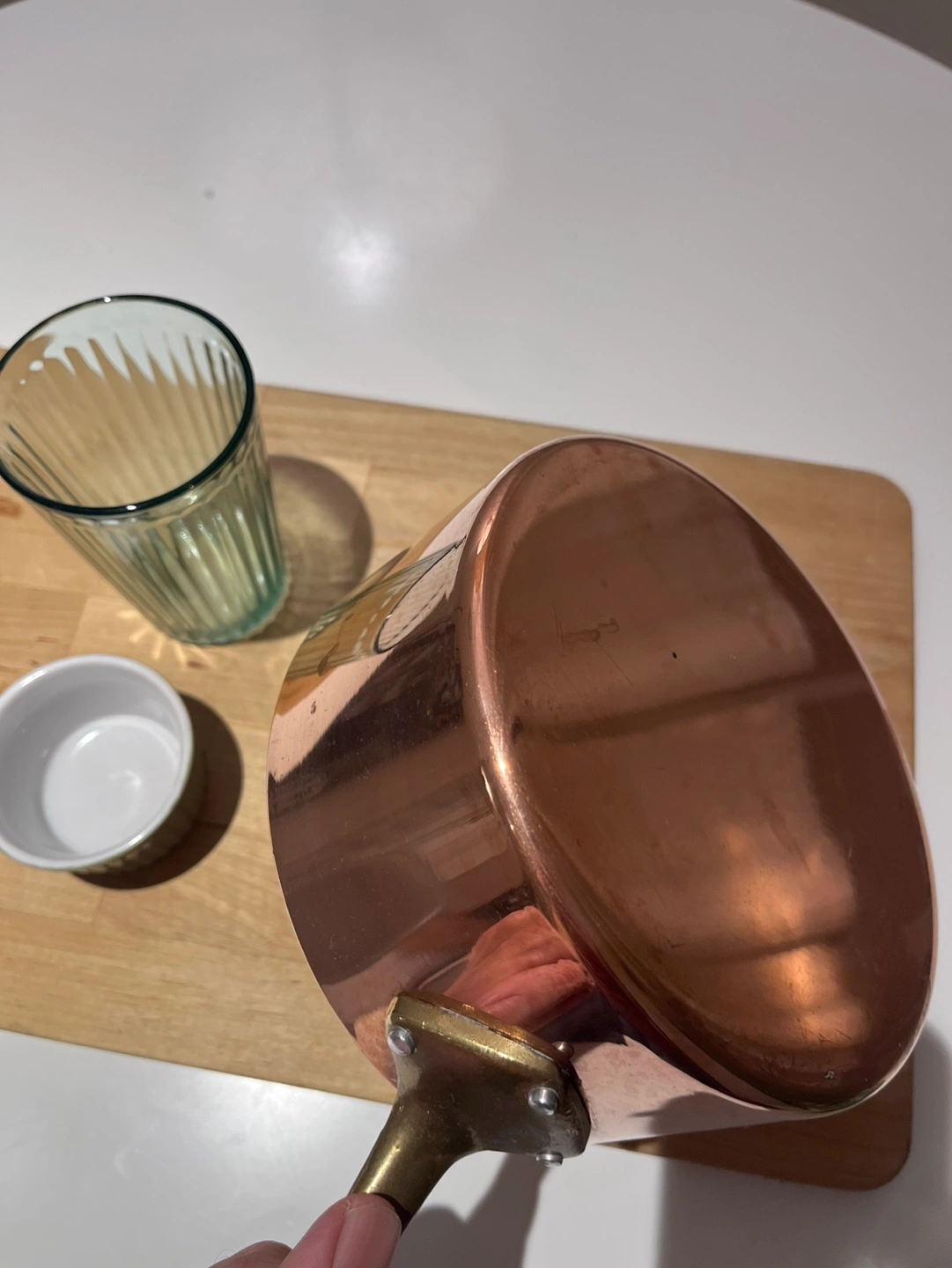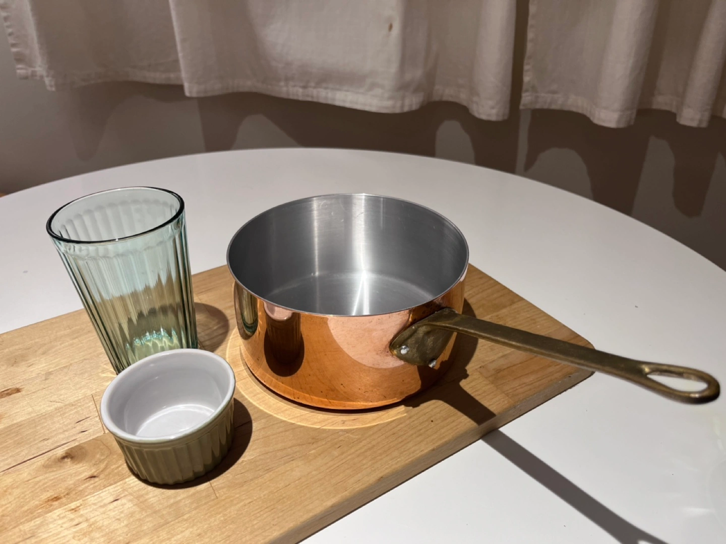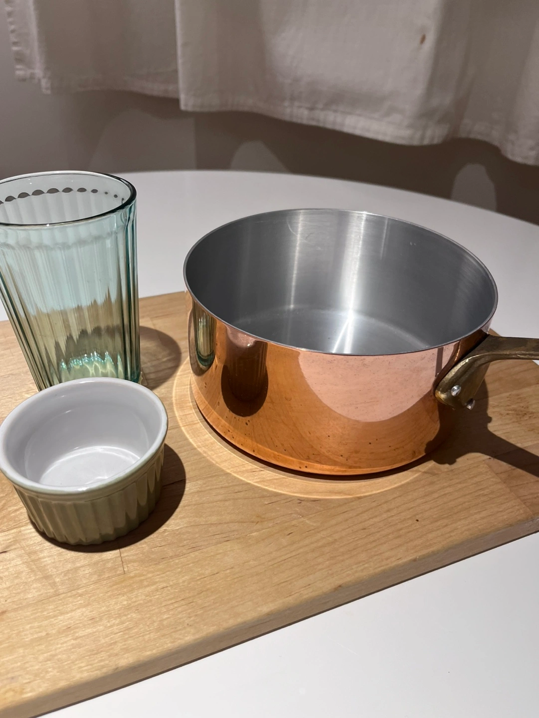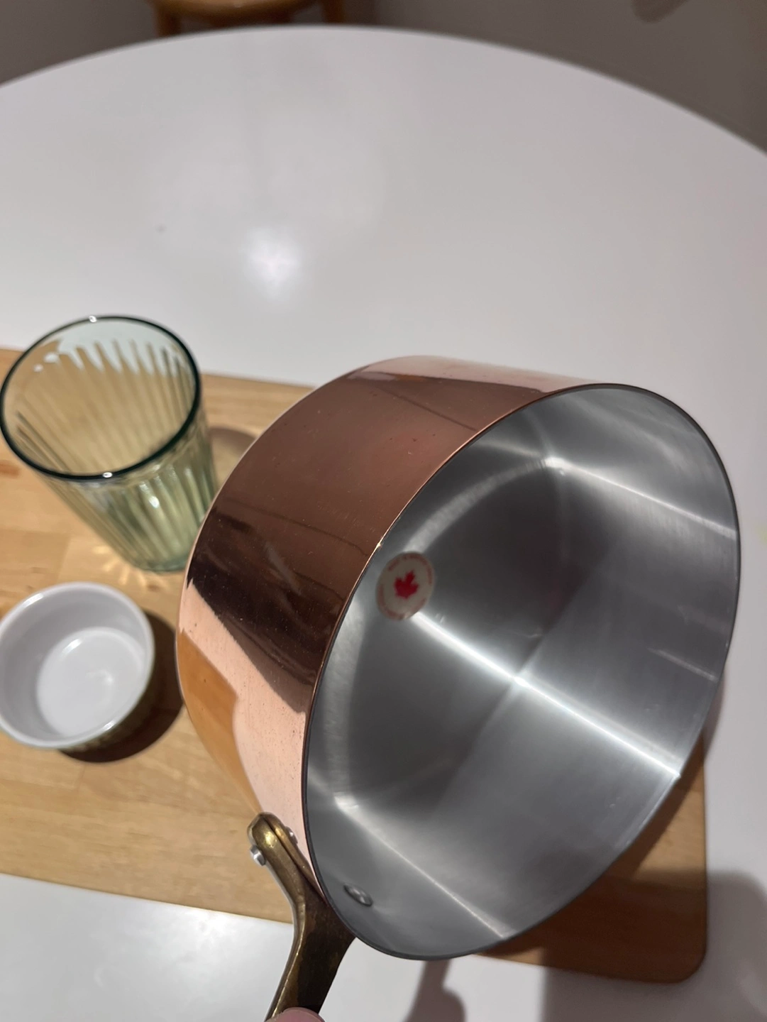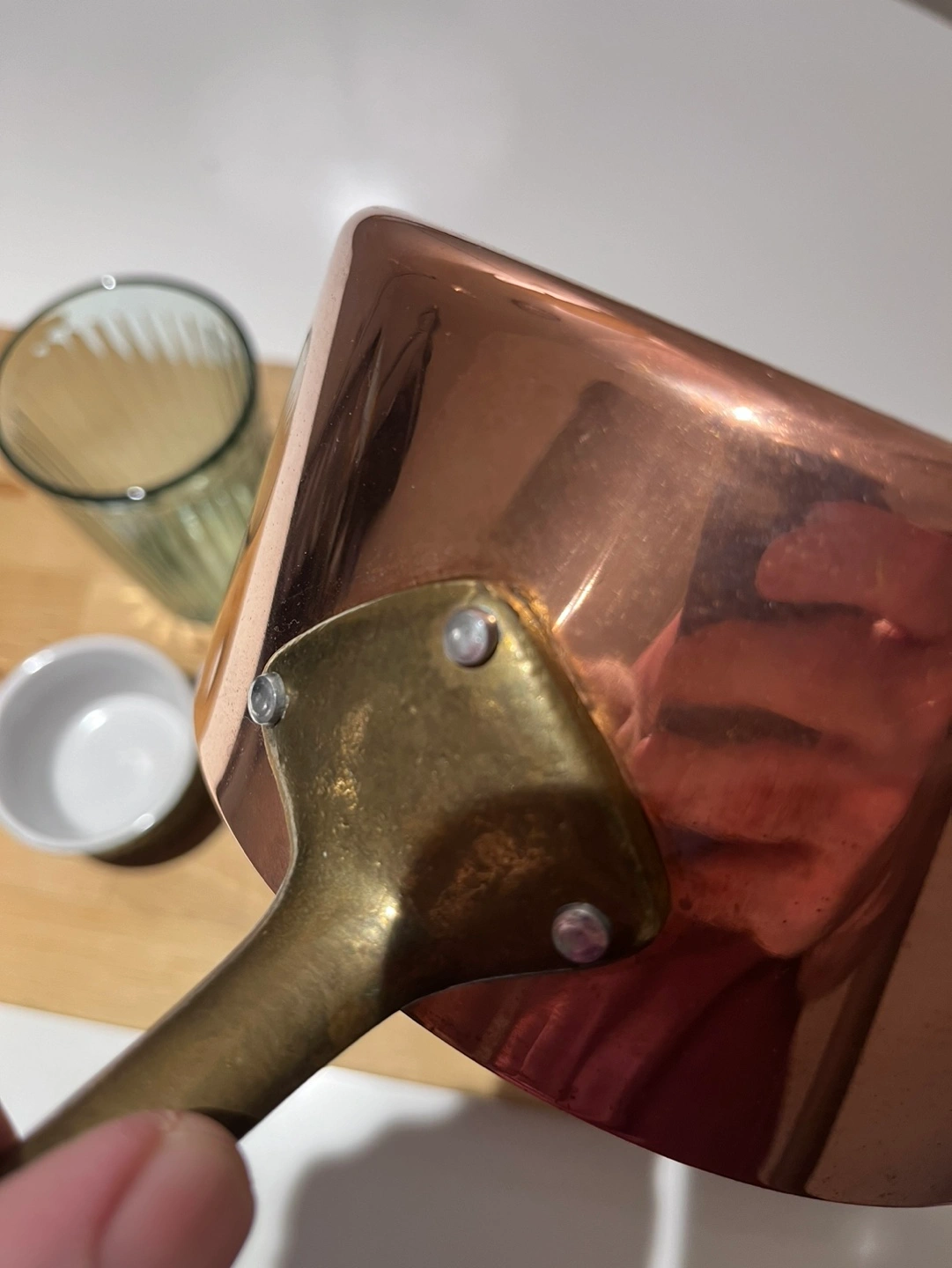 Small copper saucepan with brass handle. Made in Montreal, Canada. Pickup close to Davisville subway station.