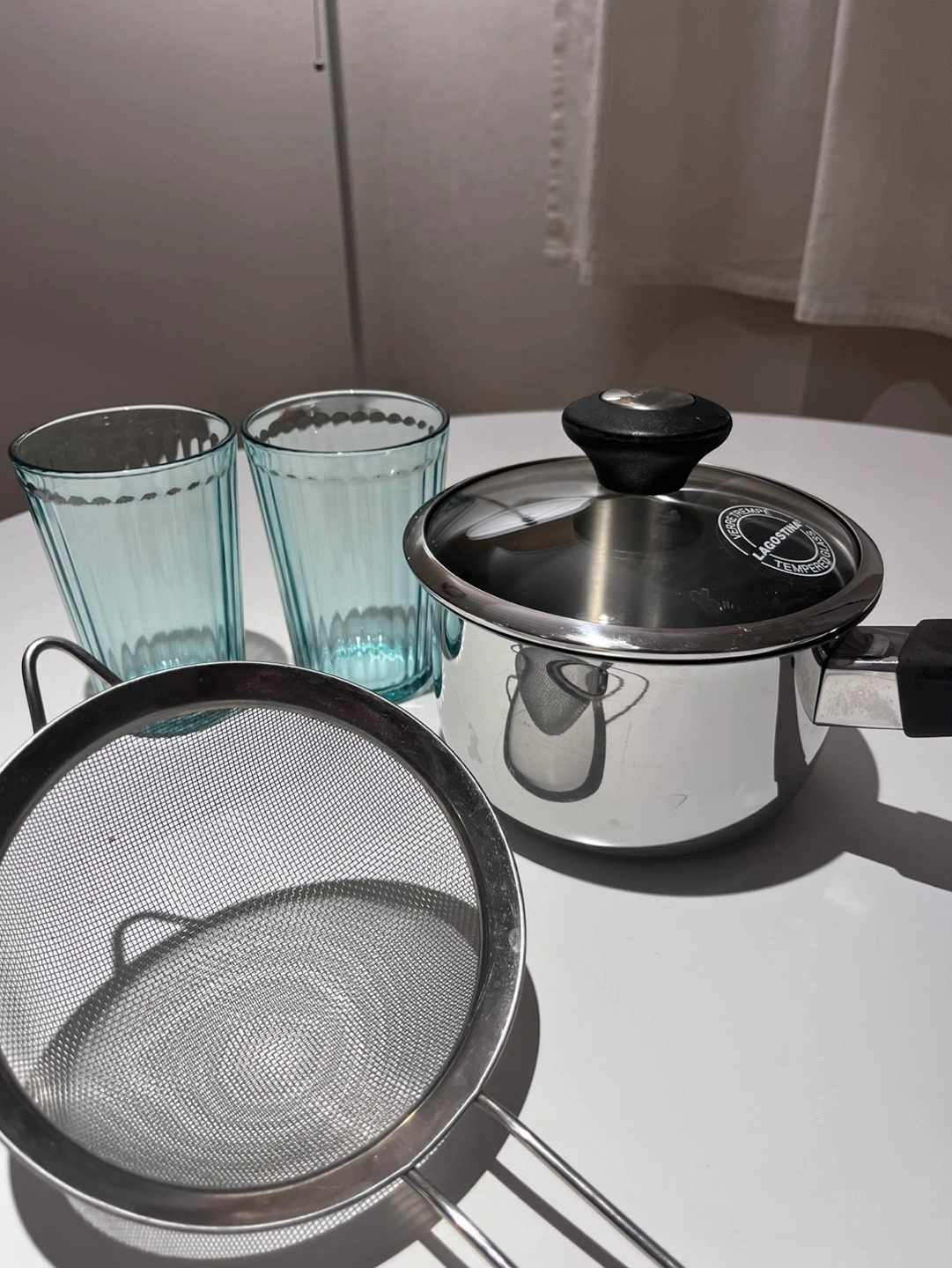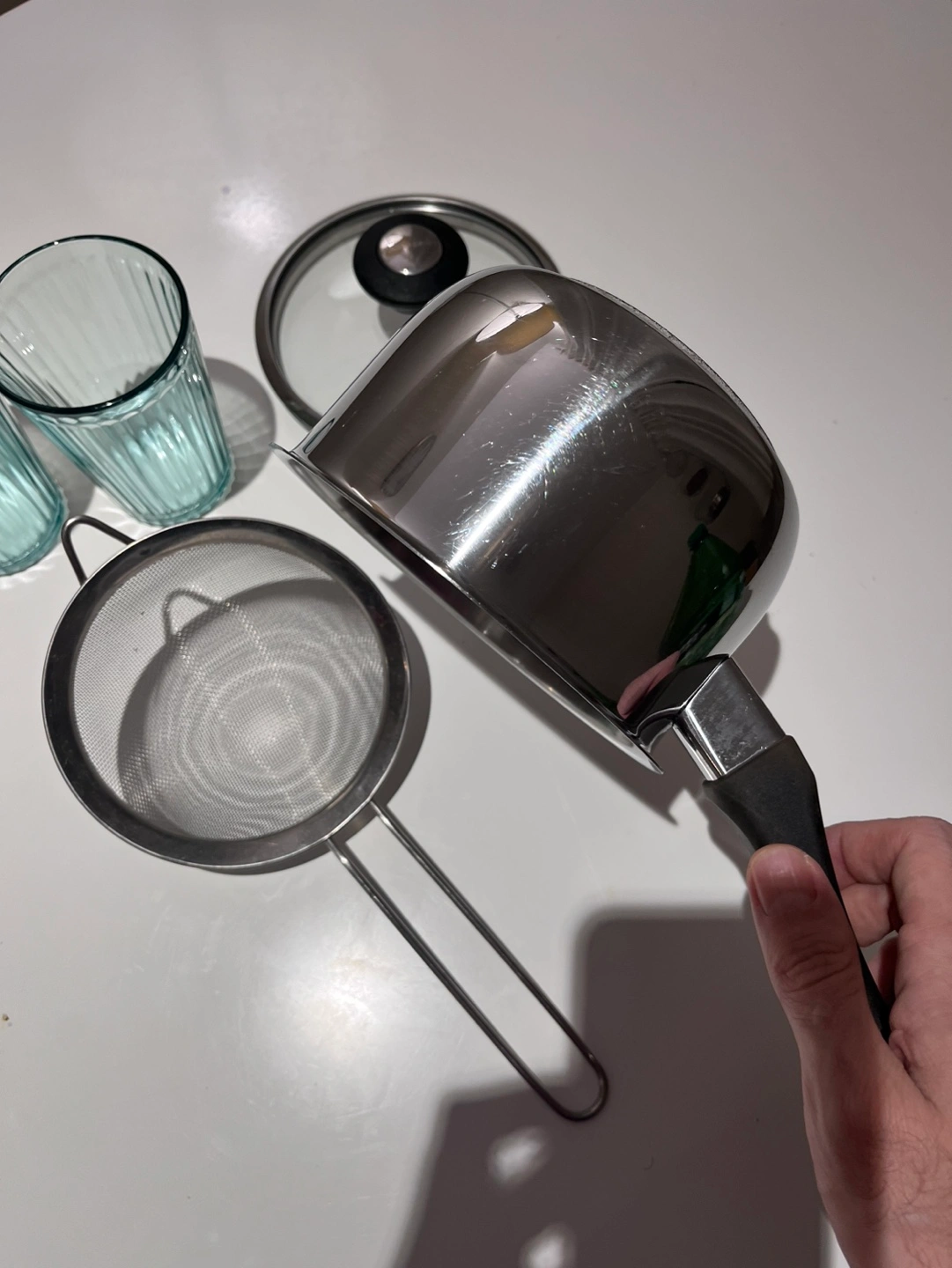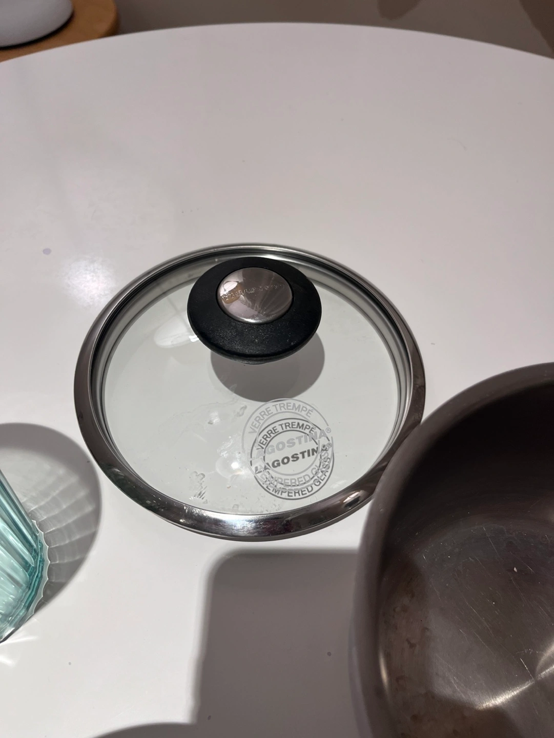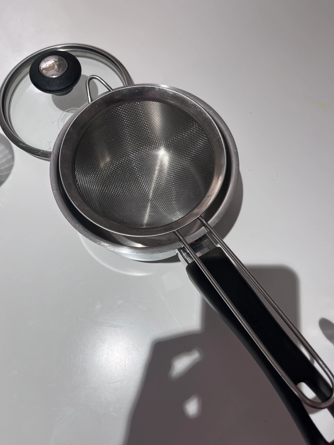 Stainless steel saucepan with lid and strainer. Small . The lid is made of glass. Pickup close to Davisville subway station.