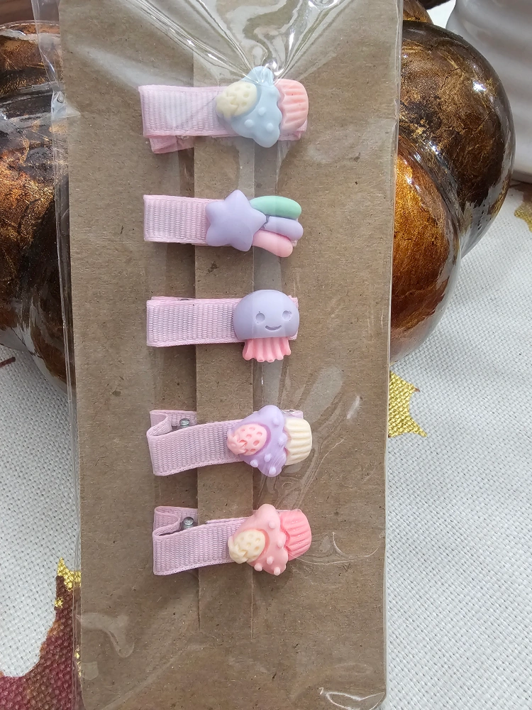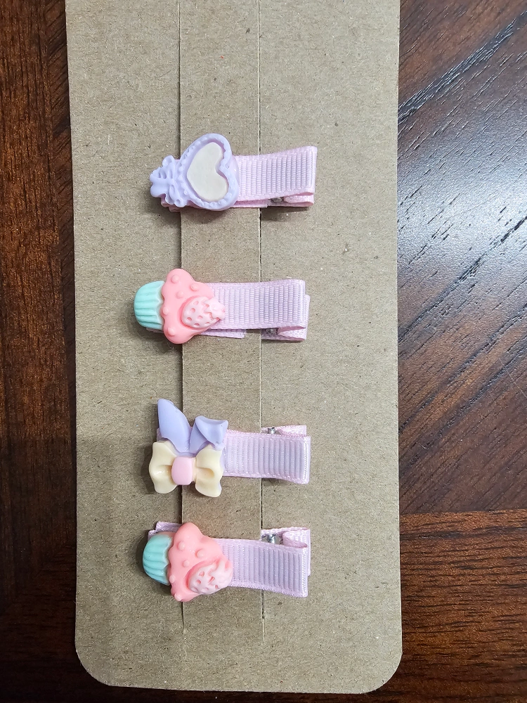 I have 2 Sets of 5 pastel hair clips and 1 set of 4. Clips are lined and Perfect to hold your mini's wispy hair and can be an add on to your baby shower gift. set of 5 = $2.50 set of 4 = $2.00
