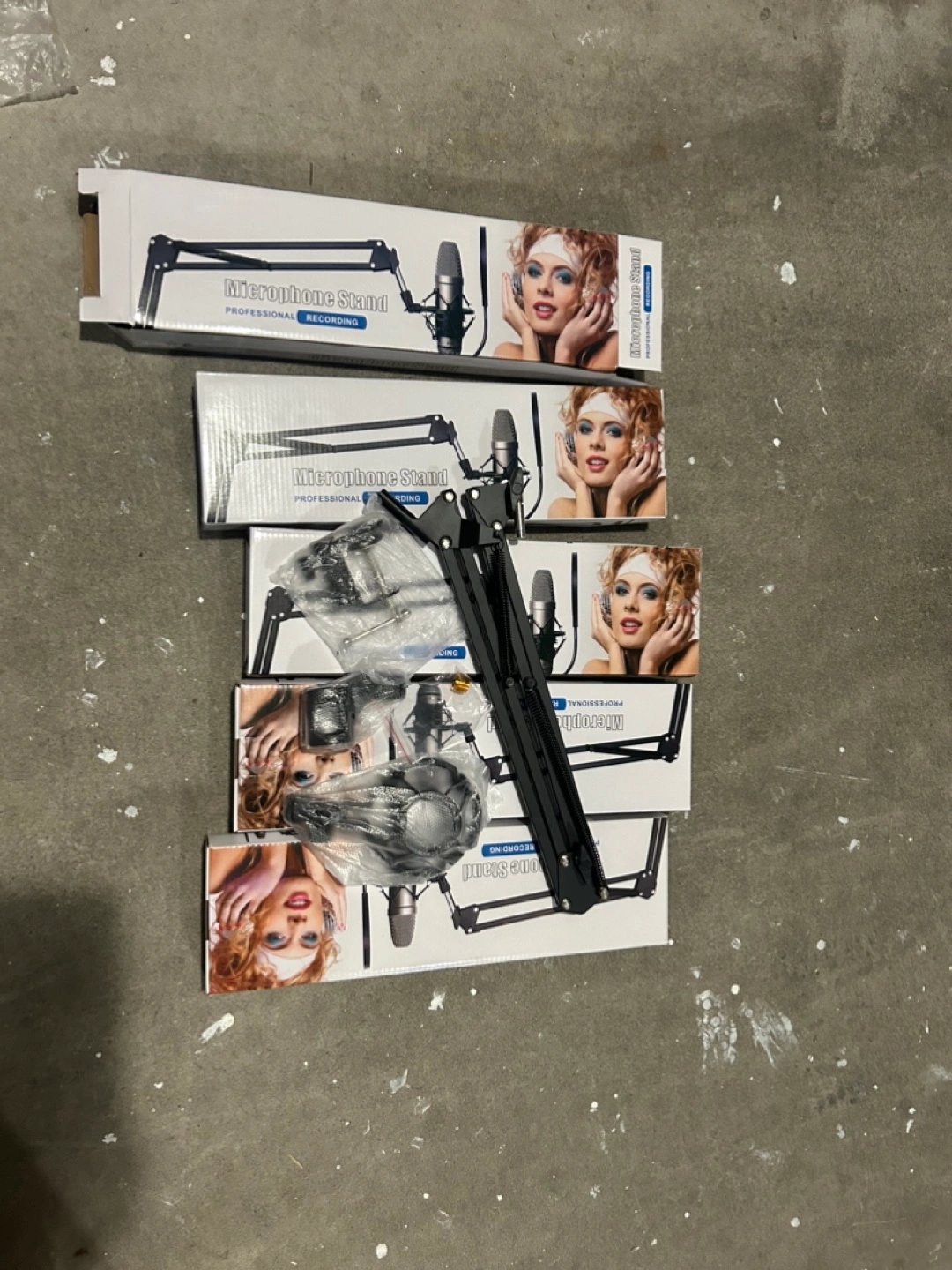 Microphone stand, new in packaging. Four stands in total. Professional recording.