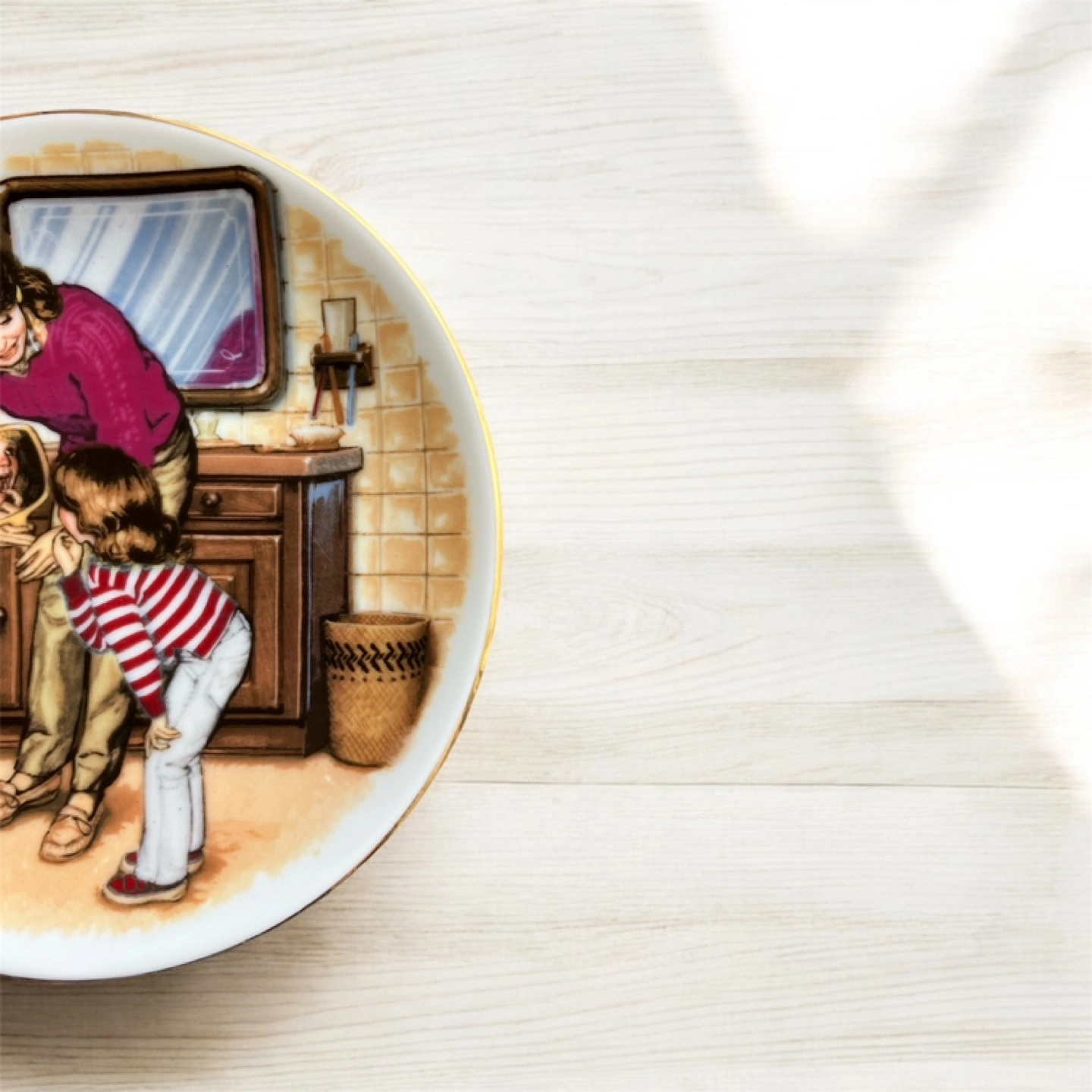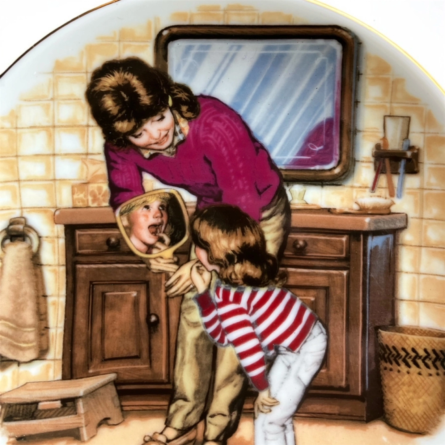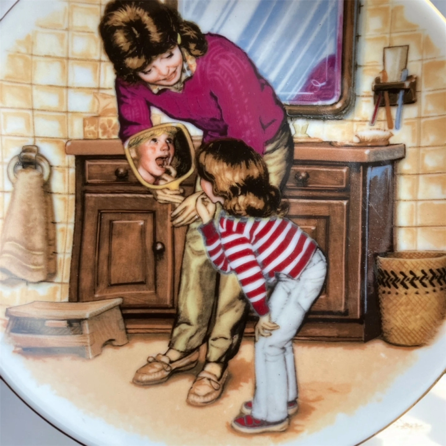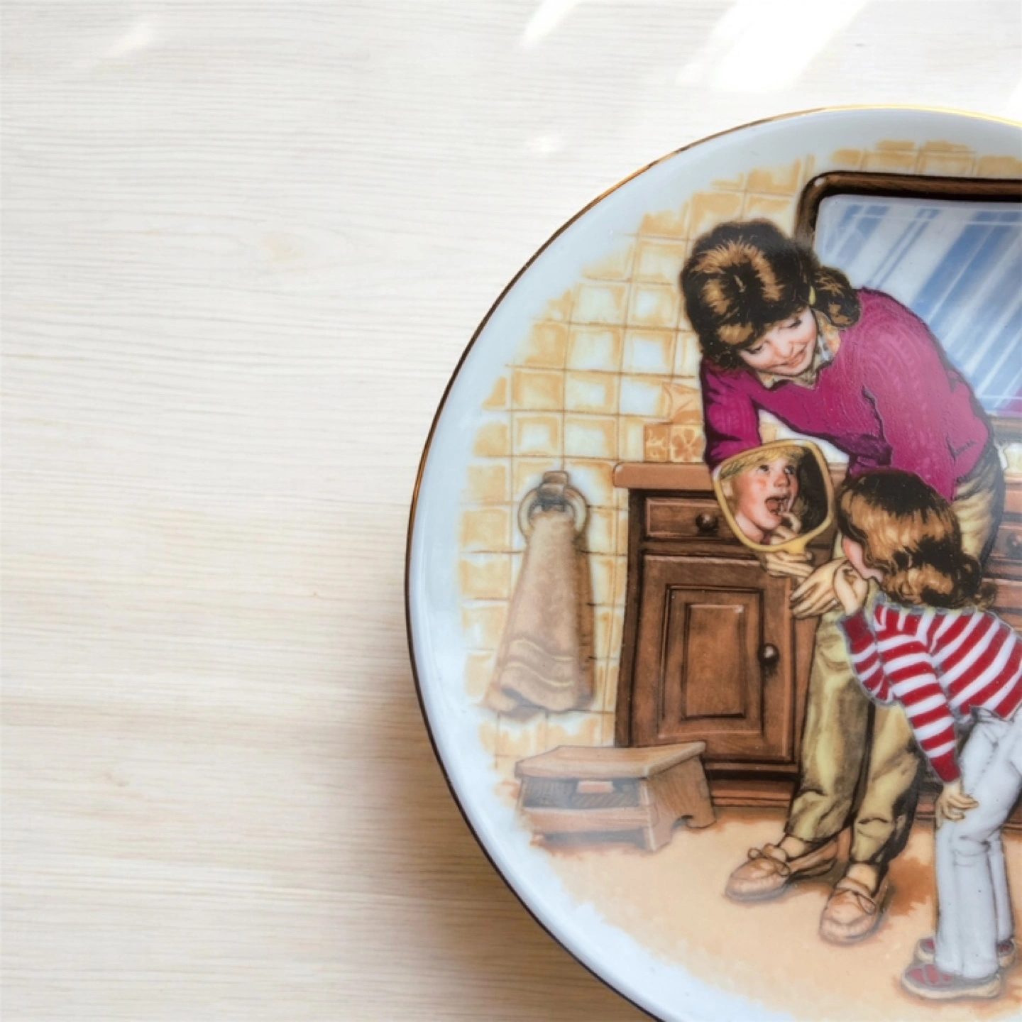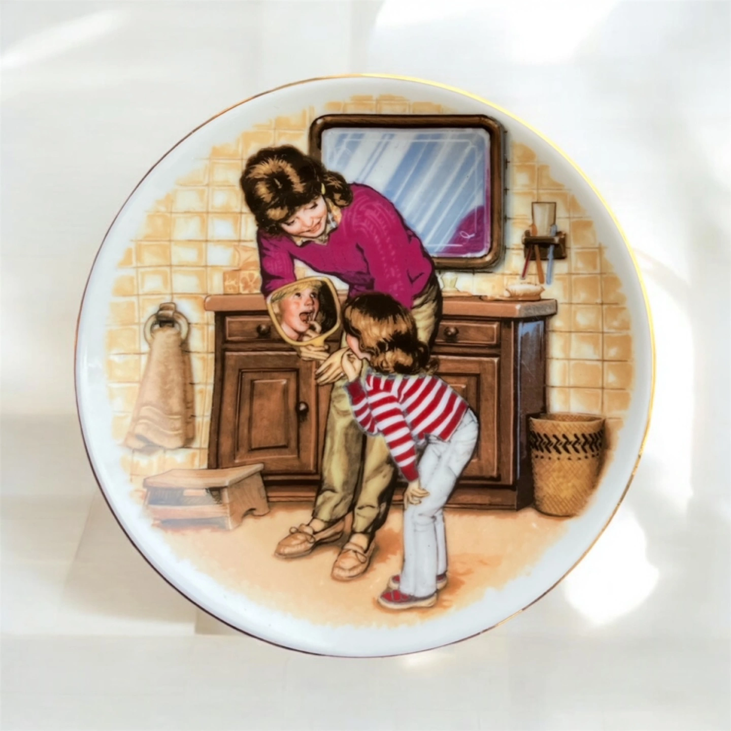Excellent preowned condition. Vintage from 1986 collectible AVON "A New Tooth" Mother's Day decorative plate. Special Moments by Tom Newsom. Porcelain trimed with 22K gold trim. So cute! Great collector piece. Measures approximately 5.25" D. I ship using recycled material within my home to reduce waste. The package will be wrapped with care if requested or deliver for a fee.