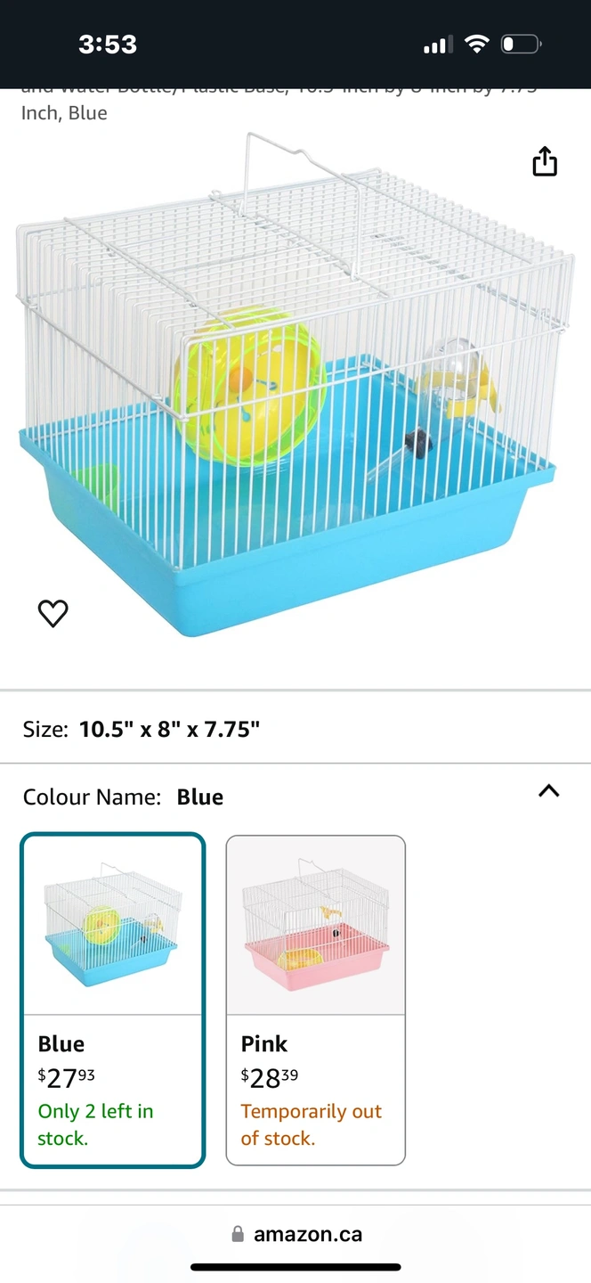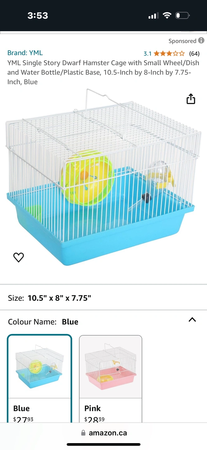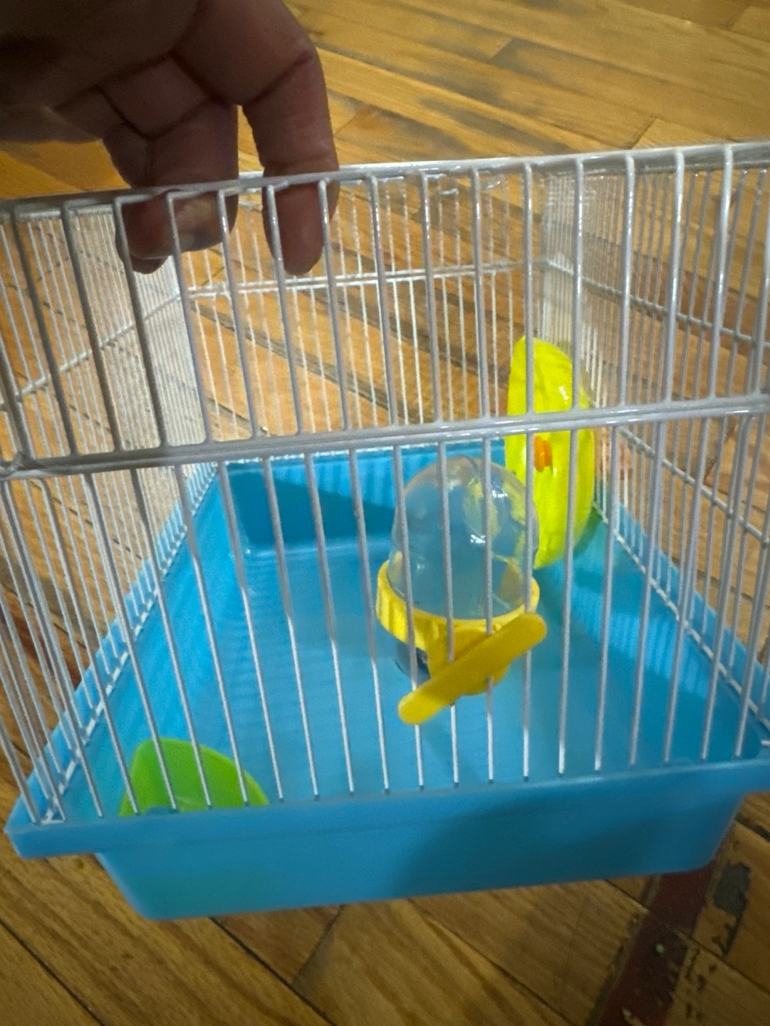 Single story hamster cage with food dish and a water bottle. Wheel has a base but no cover. Pick up NE Marlborough See my other ads