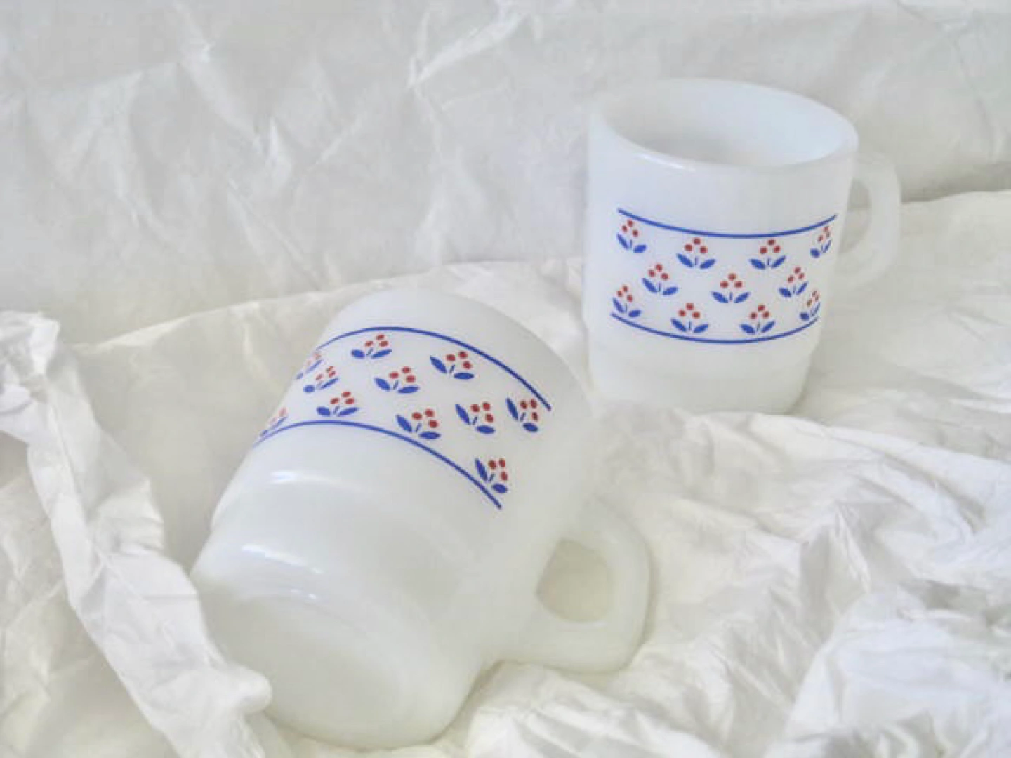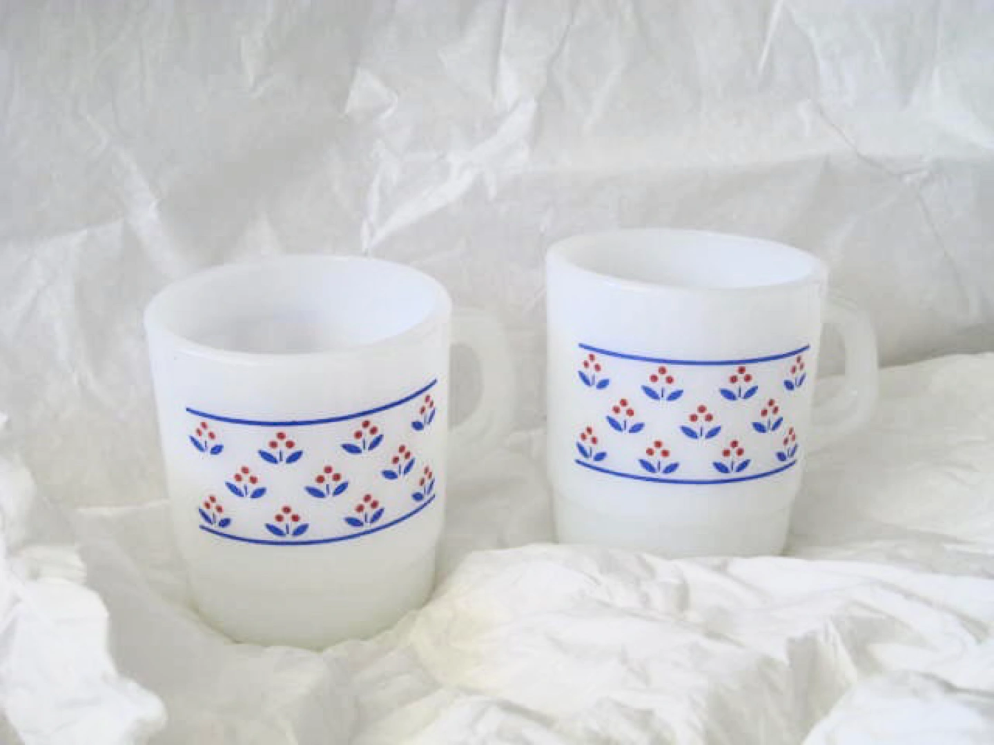 *10 each, 18 for the set. Vintage milk glass, termocrisa milk glass. Good for coffee, milk, etc.. very cute! ๐ Good condition. Ready for use right away, all cleaned!