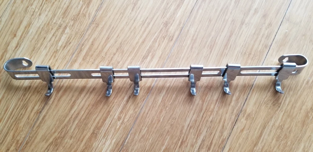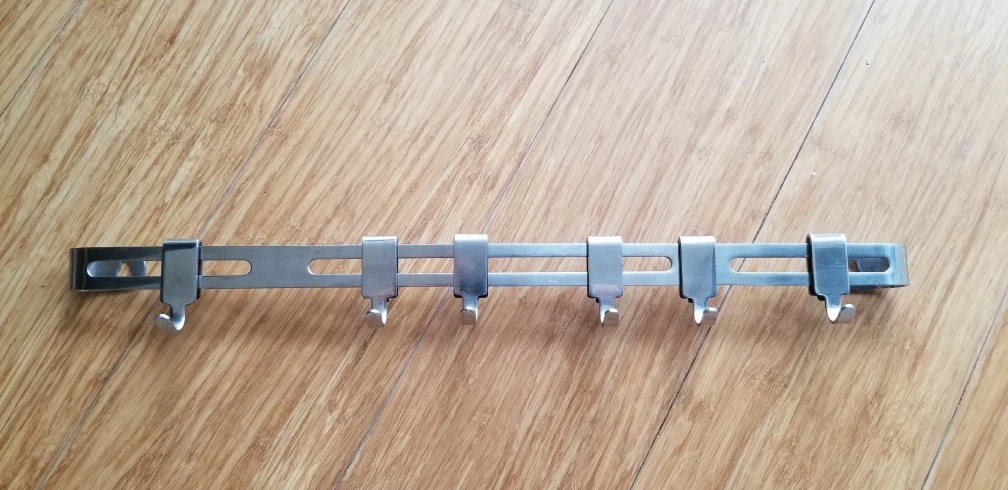 Stainless steel pot/accessories rack with 5 magnetic hooks. Perfect for hanging pots and pans or kitchen utensils.