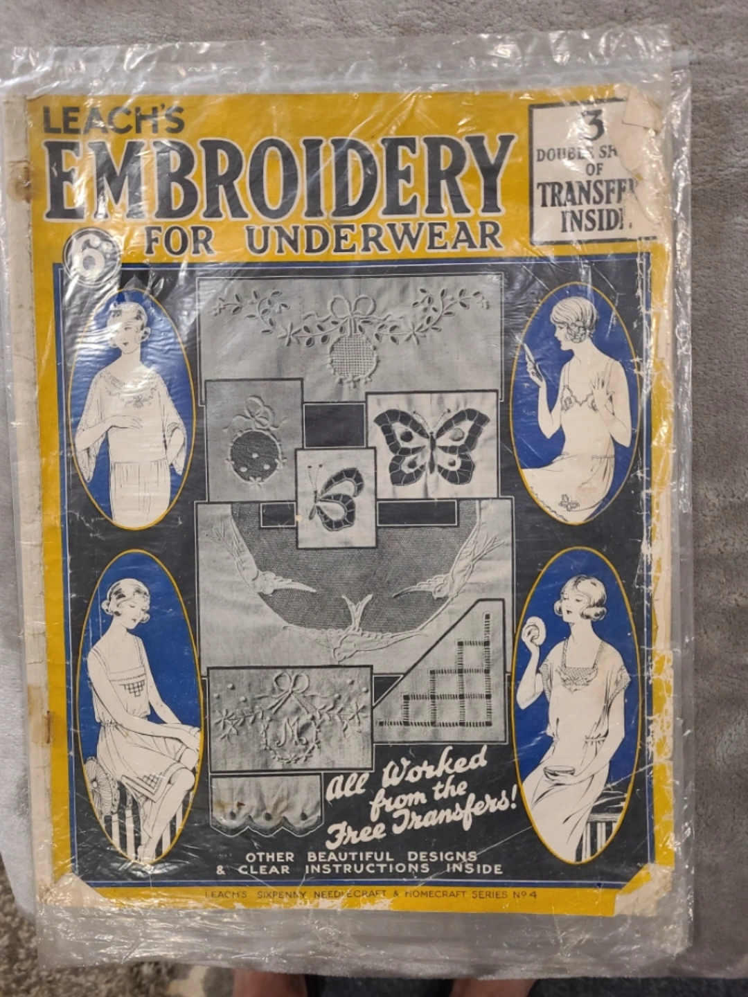 Vintage book with embroidery patterns for underwear. Contains 12 transfers. 2 issues.