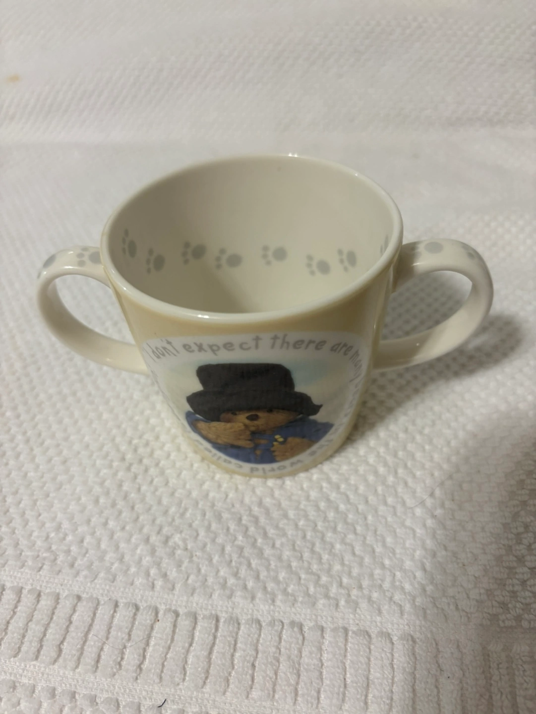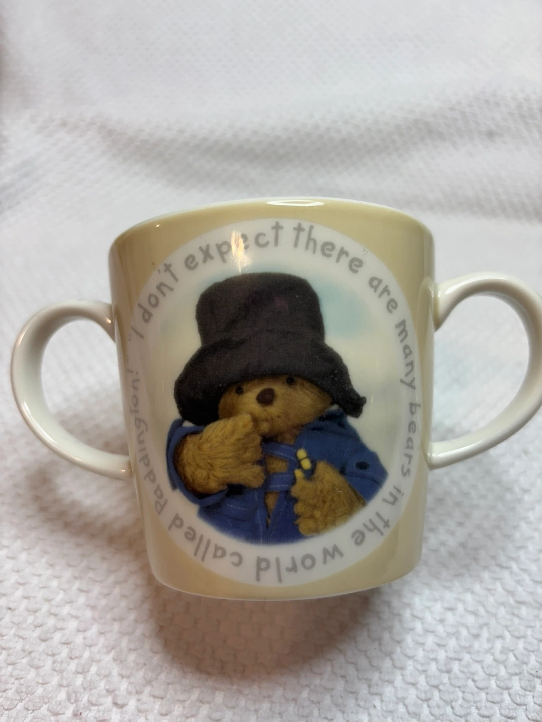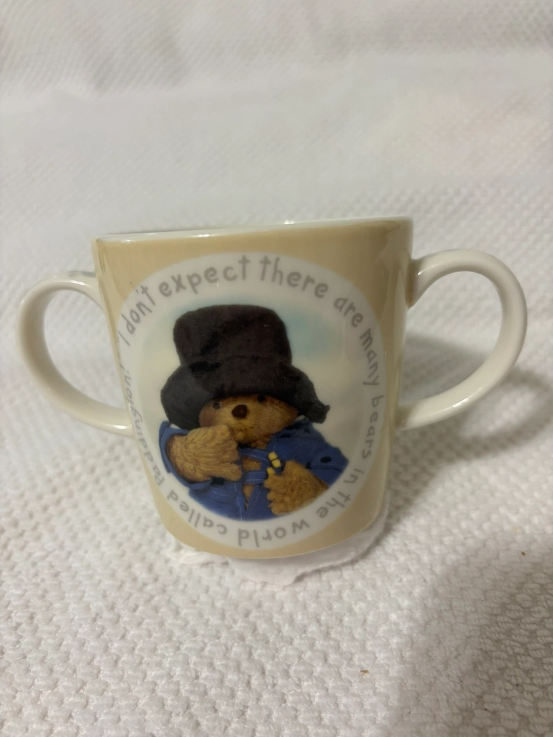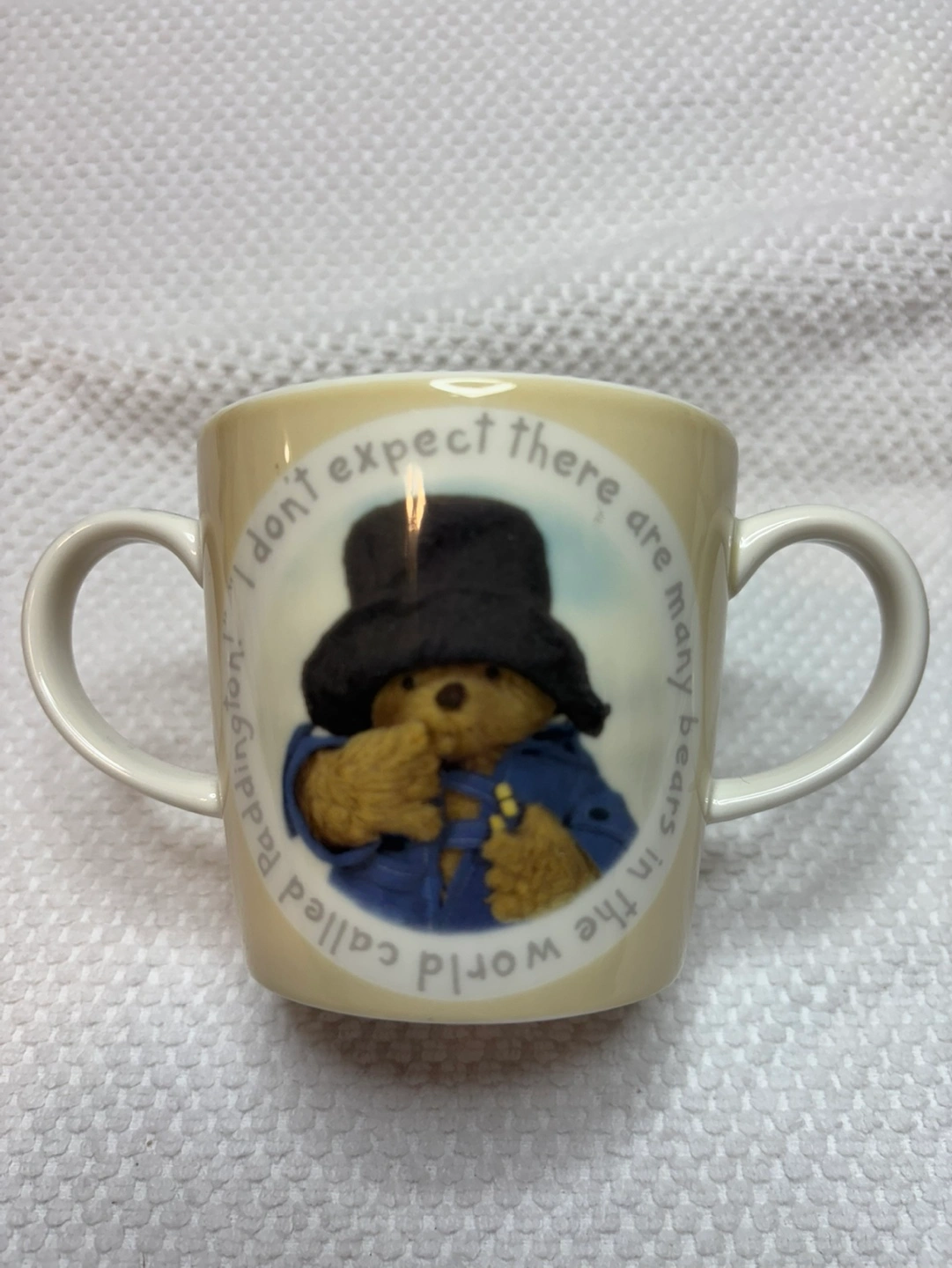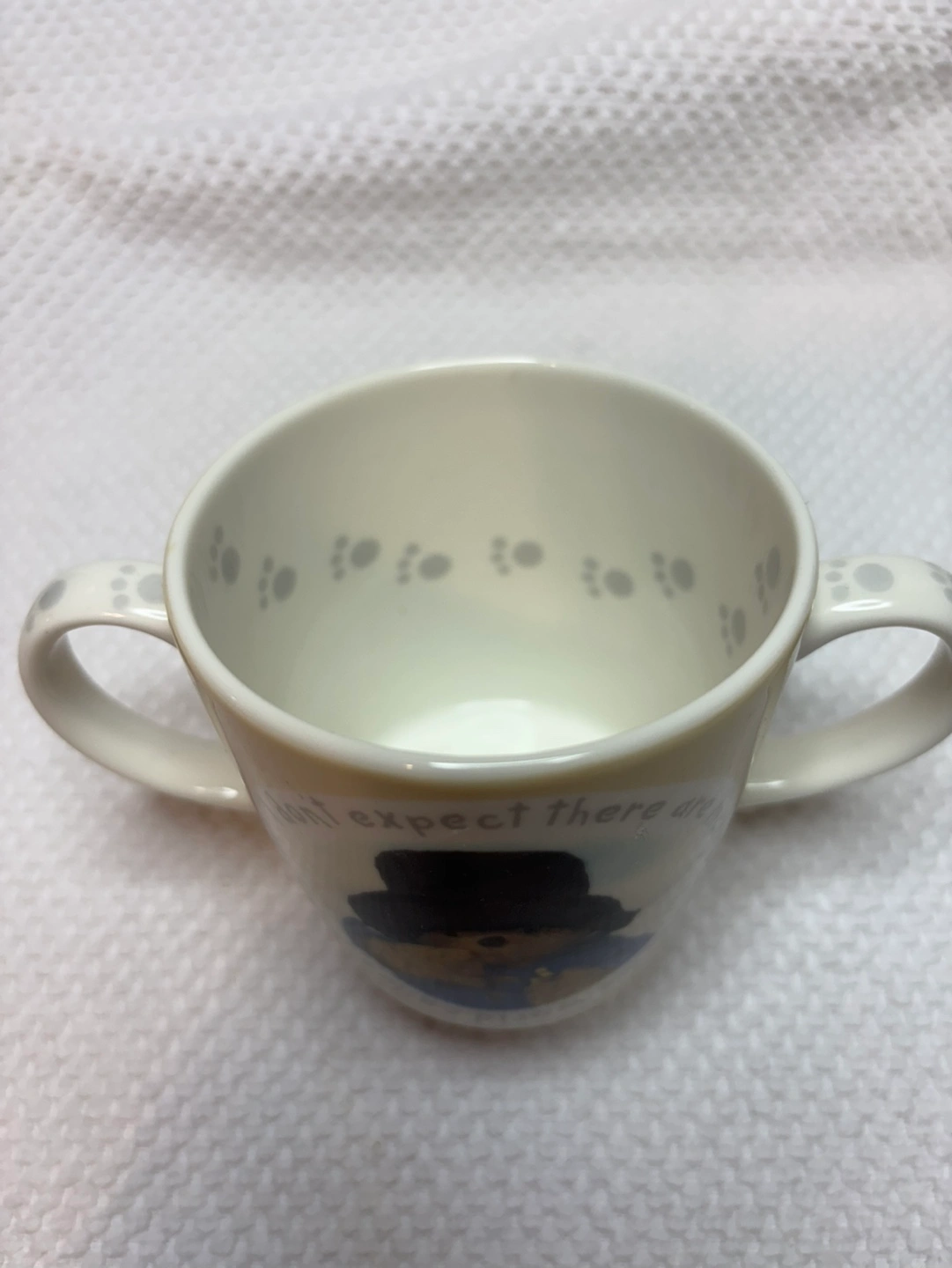 The Paddington Bear Double Handled Mug by Spode ideal for collectors and fans alike. This decorative mug features charming illustrations of the beloved Paddington Bear. Same image on both sides. Cute bear paw prints inside and on the both handles Microwave, freezer and dishwasher safe. SMOKE FREE AND PET FREE HOME. CASH only please. Thalnks for looking and HAPPY SHOPPING !