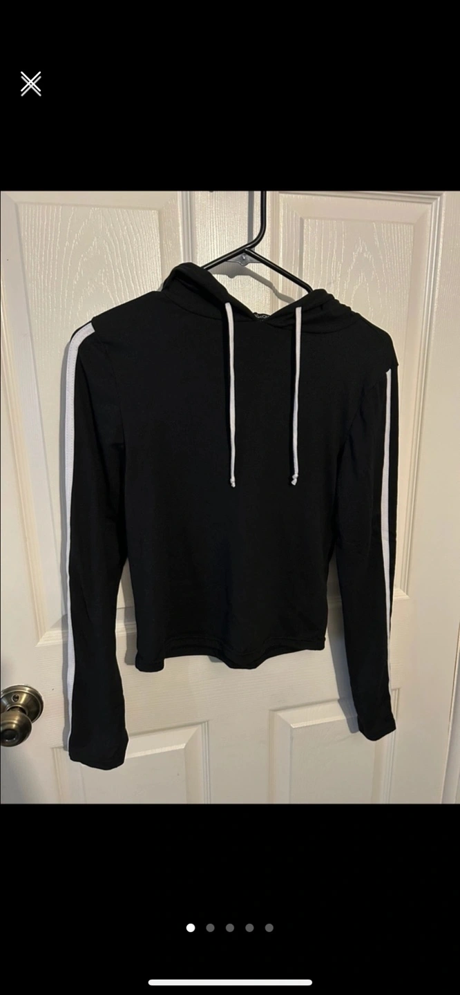 Fashion Nova Black hoodie with white stripes down the sleeves. Size Medium.