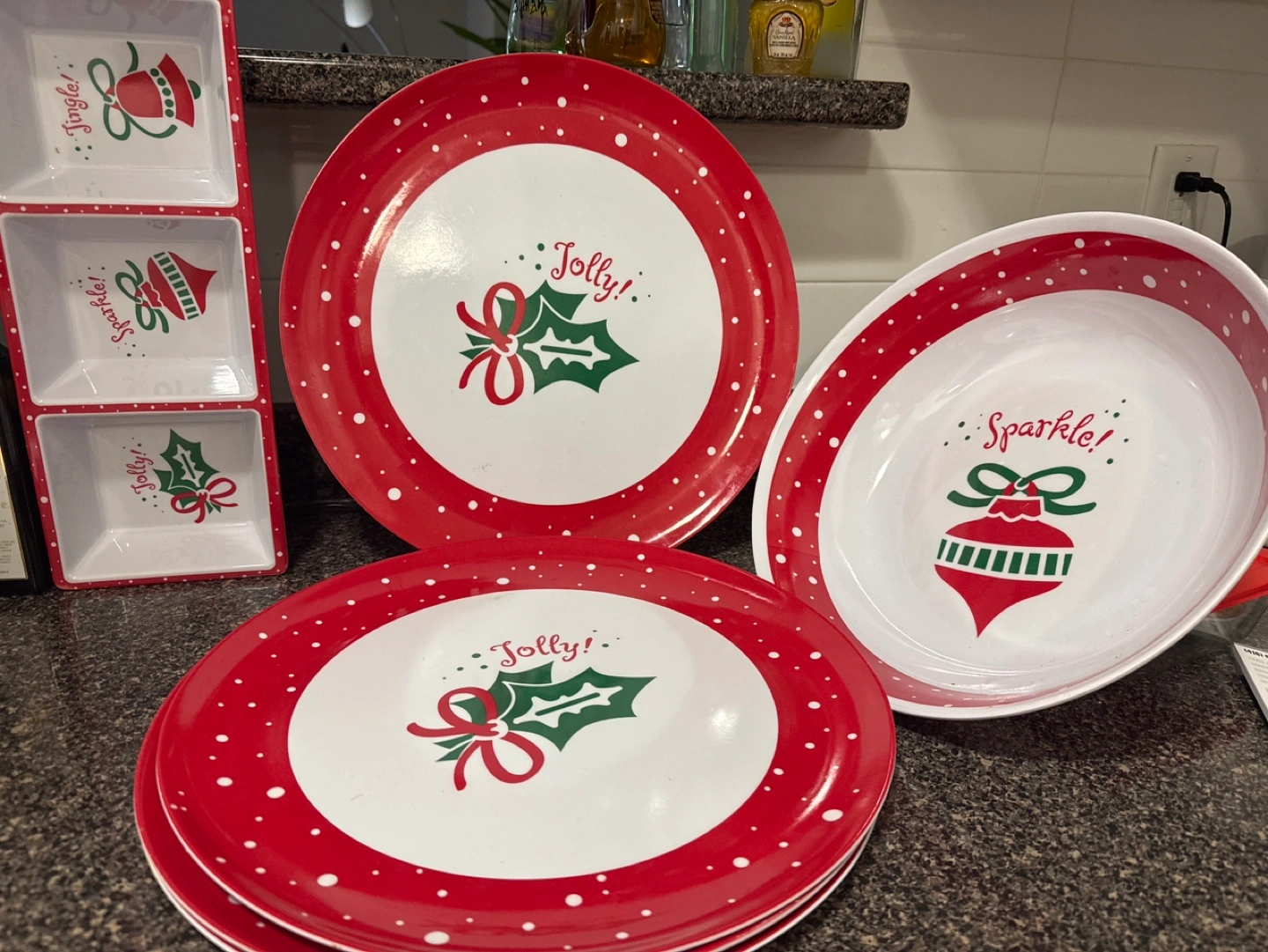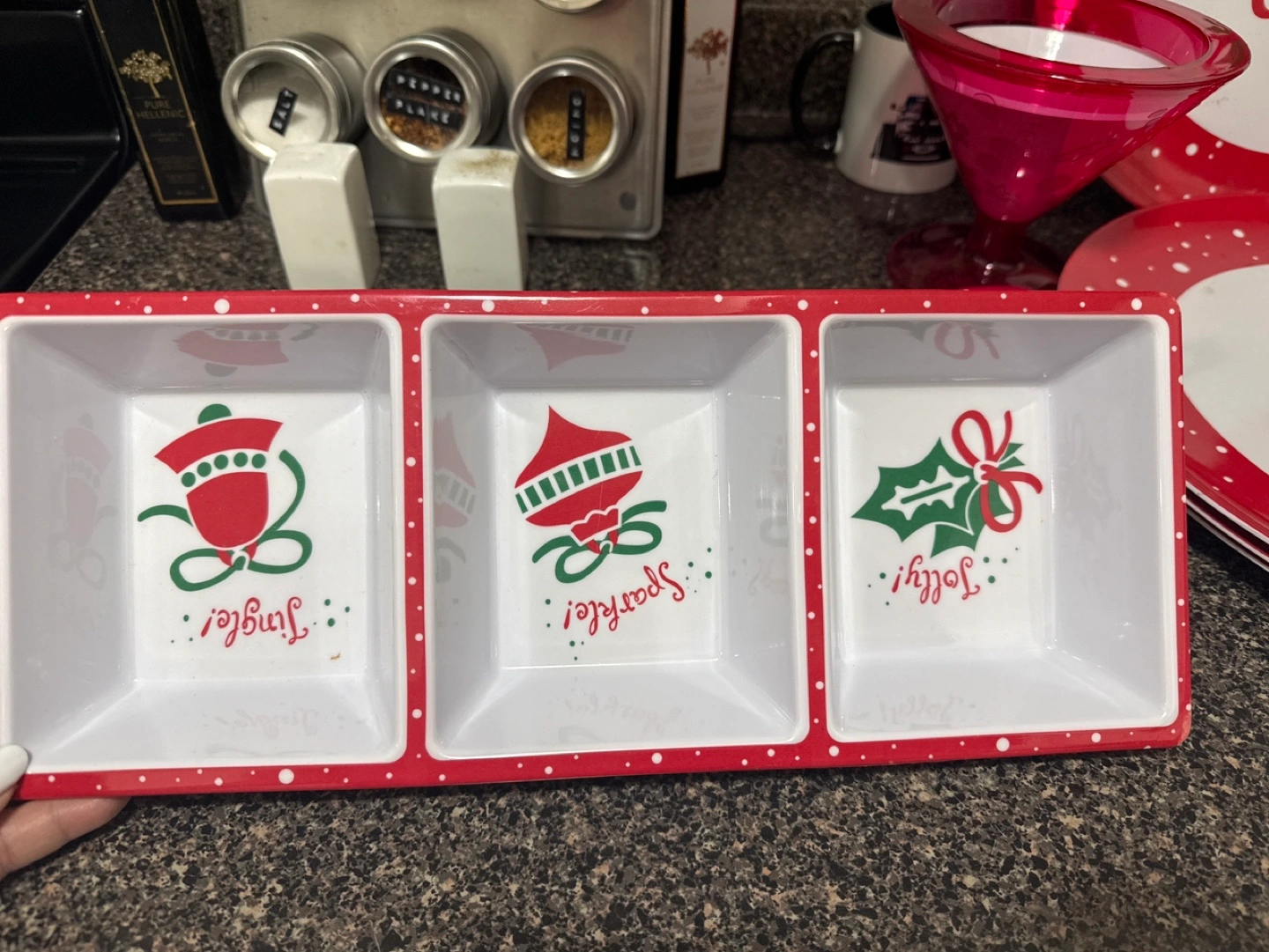 PRICE ⬇️ to Set $ 10 Set of Christmas themed serving dishes. 1 bowl, 4 serving plate , 3 candy tray