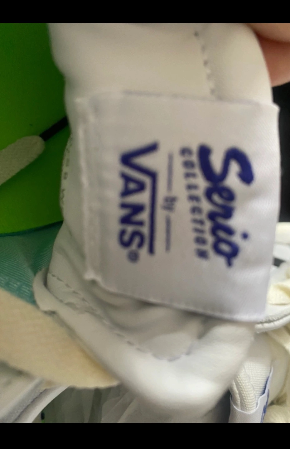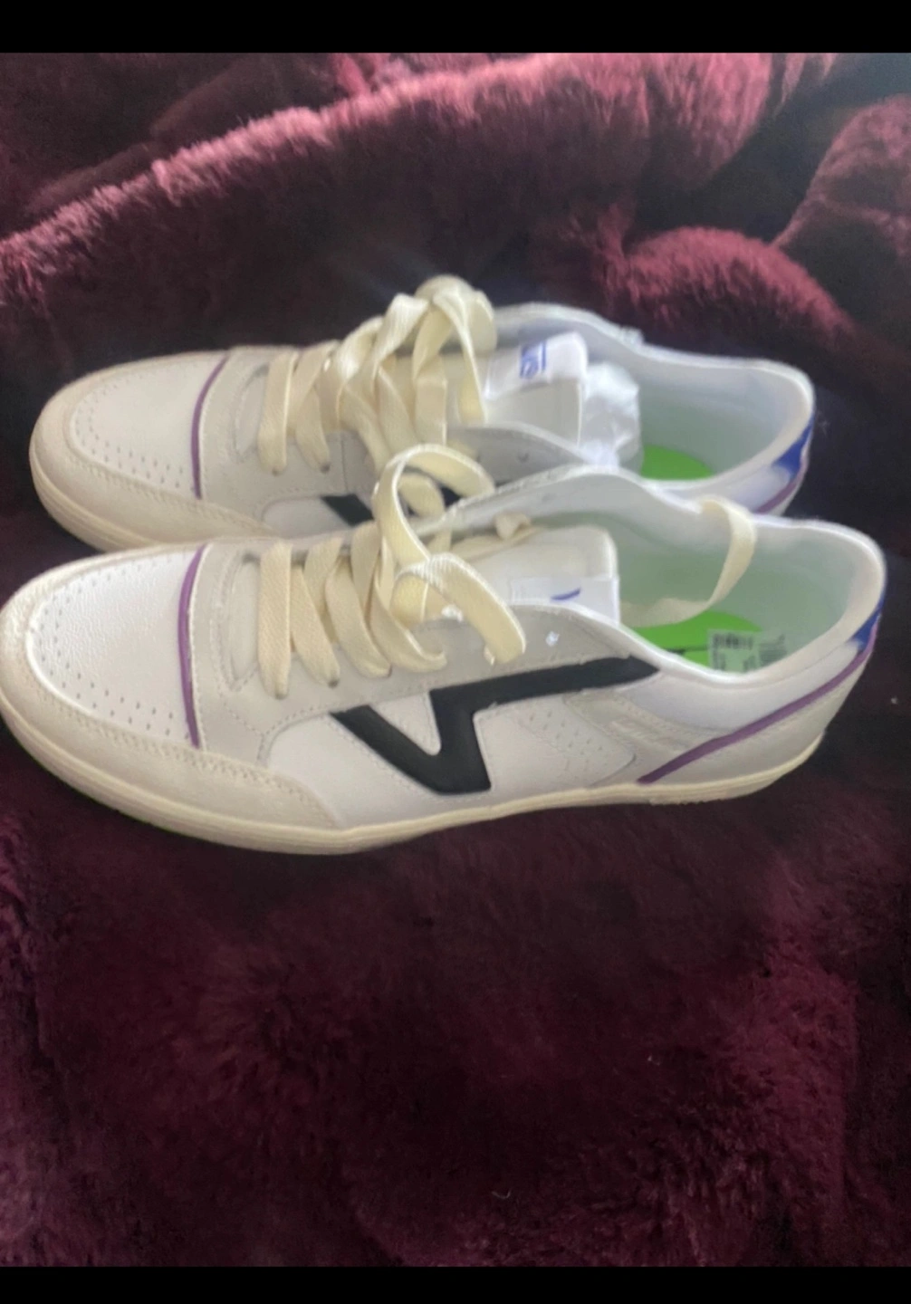 VANS BRAND NEW! White leather sneakers with purple and black accents. Green soles.