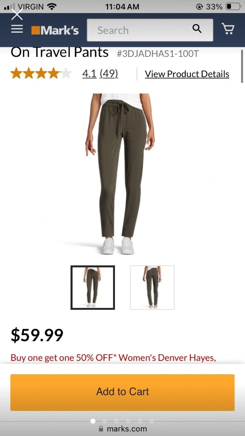 Brand new with tags olive Mark’s Warehouse Denver Hayes travel comfortable stretchy pants. Size small but can fit M as I’m usually a M in pants. Standard length. I’m 5’3.5 and they can fit 5’3-5’7 ish or be more cropped. Super cute. Lost weight never got a chance to take the tags off and wear them. Perfect for work, for fall time weather outdoors, to wear around the house as they’re really comfy, even to slip a pair of leggings under. etc! Pickup Hurontario and Dundas in Mississauga. Cash only.