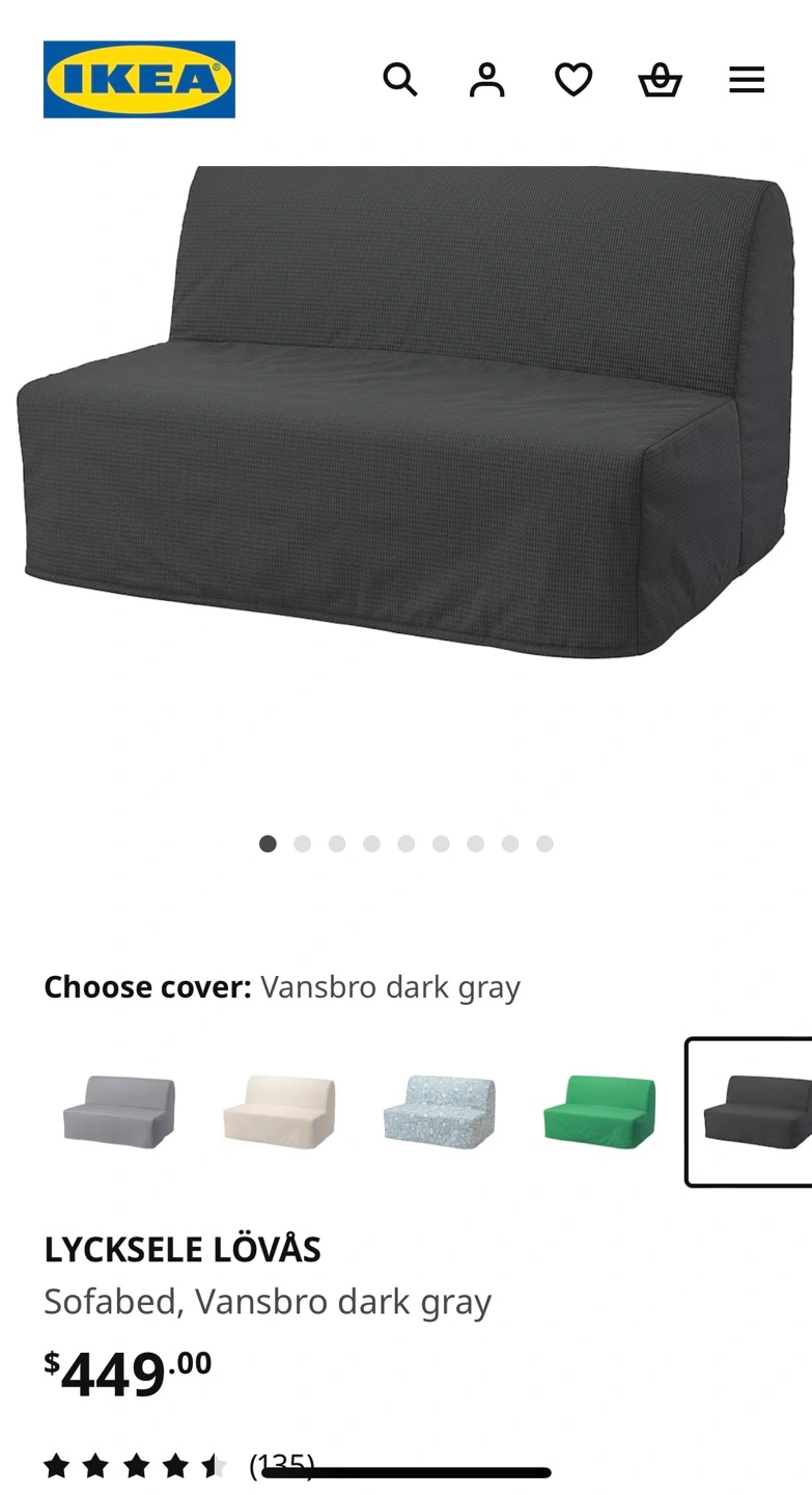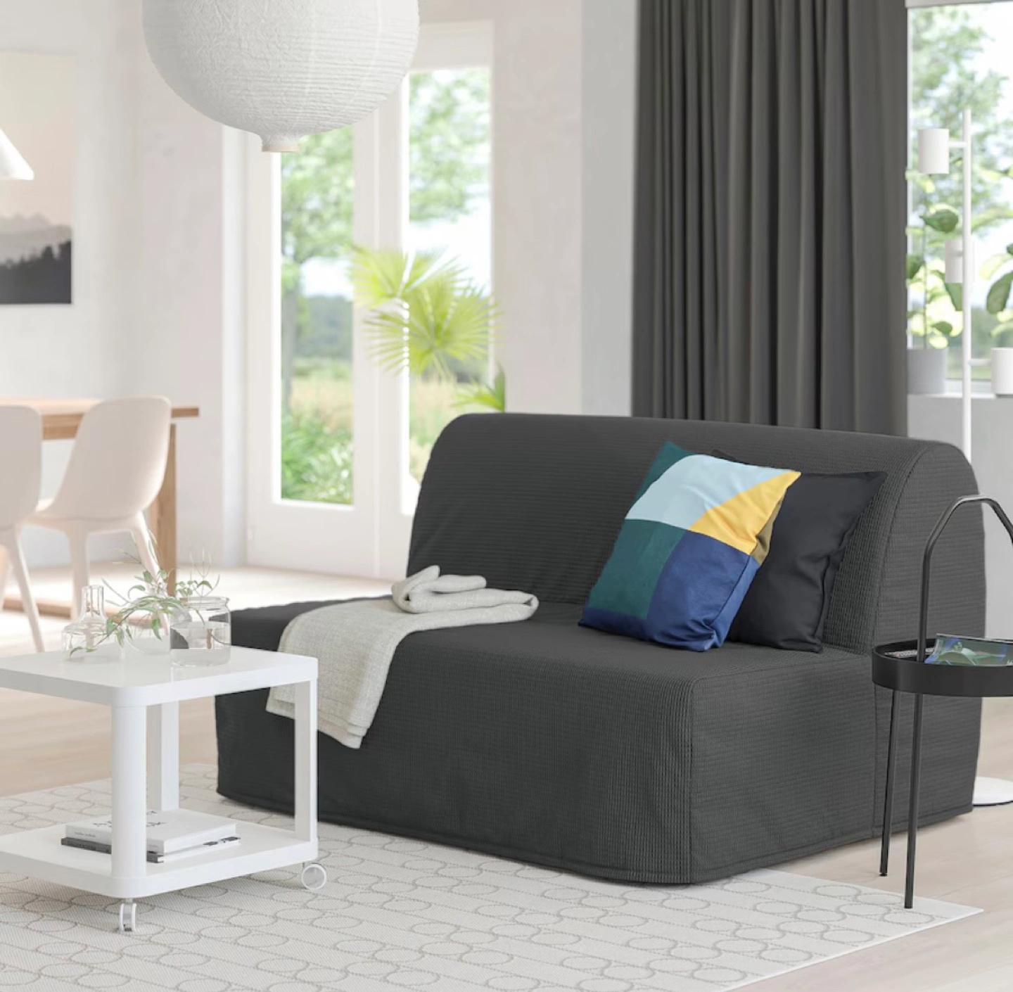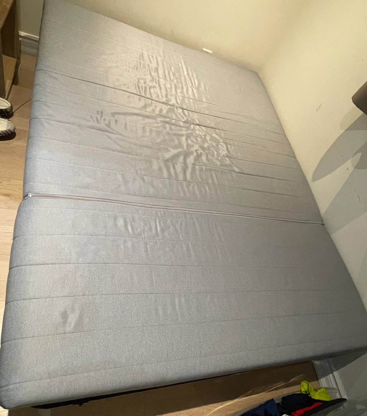 In great condition. Used for guests only few times. With gray cover. Queen size. Dark grey sofa bed with removable cover. Has wheels for easy movement. Folds out to a double bed. Must pickup Nov 14 (Thursday)