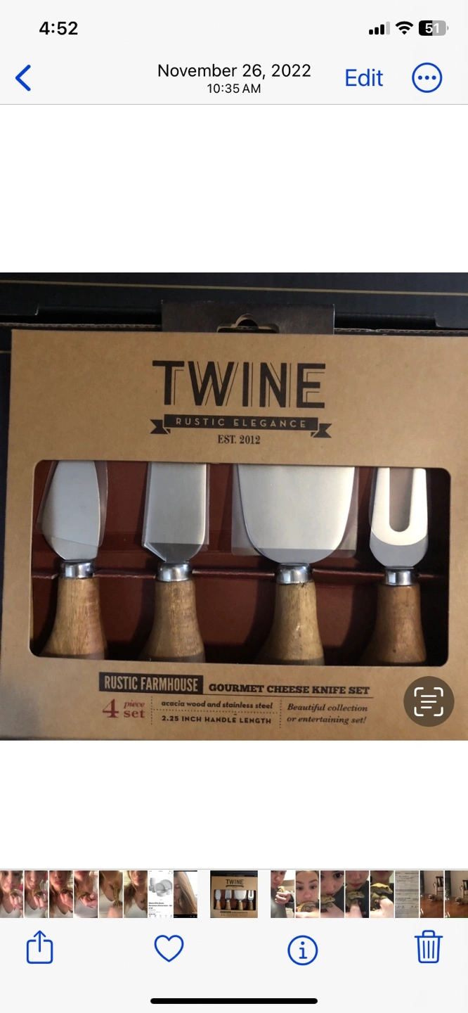 Four piece set of cheese knives, acacia wood and stainless steel handles. 2.25 inch handle length. Pick up in Newmarket.