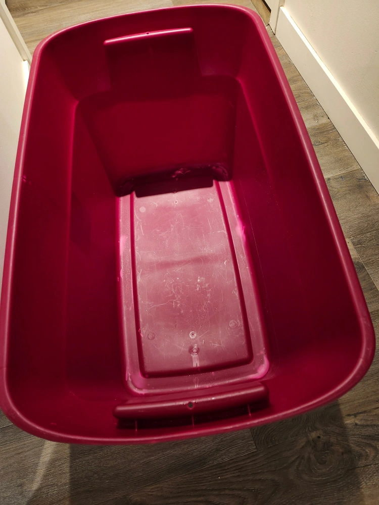 Red storage bin. 30 Gallon capacity. Has some scratches. Pickup in Dunbar.