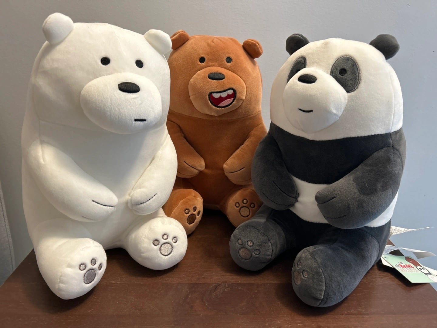 Three plush toys from the cartoon We Bare Bears. Includes Grizzly, Panda, and Ice Bear. $25 bundle