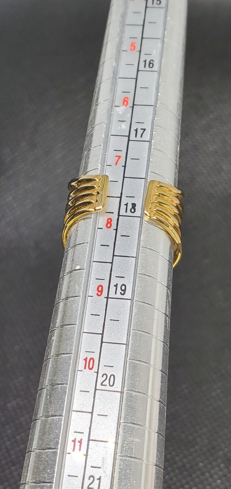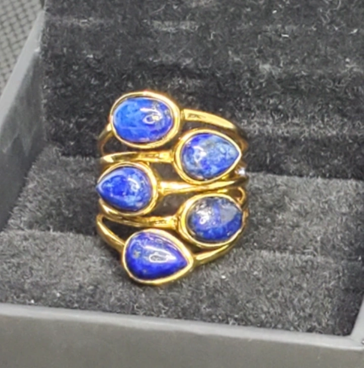 Gold tone ring with lapis lazuli stones. Five stones. Open adjustable closure.