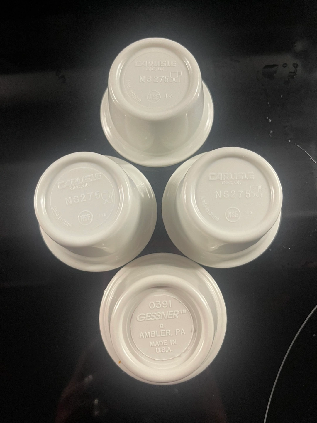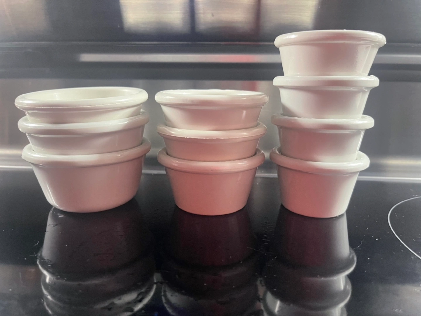 Set of 10 thick white mini ramekins. Perfect for individual restaurant-style sauces & dips. Excellent used condition, some barely used.