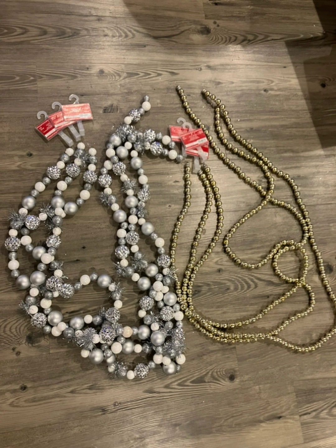 6 Ashland Garlands, 3 Gold Bead Strands and 3 Silver Bauble Strands. Brand new, unused.
