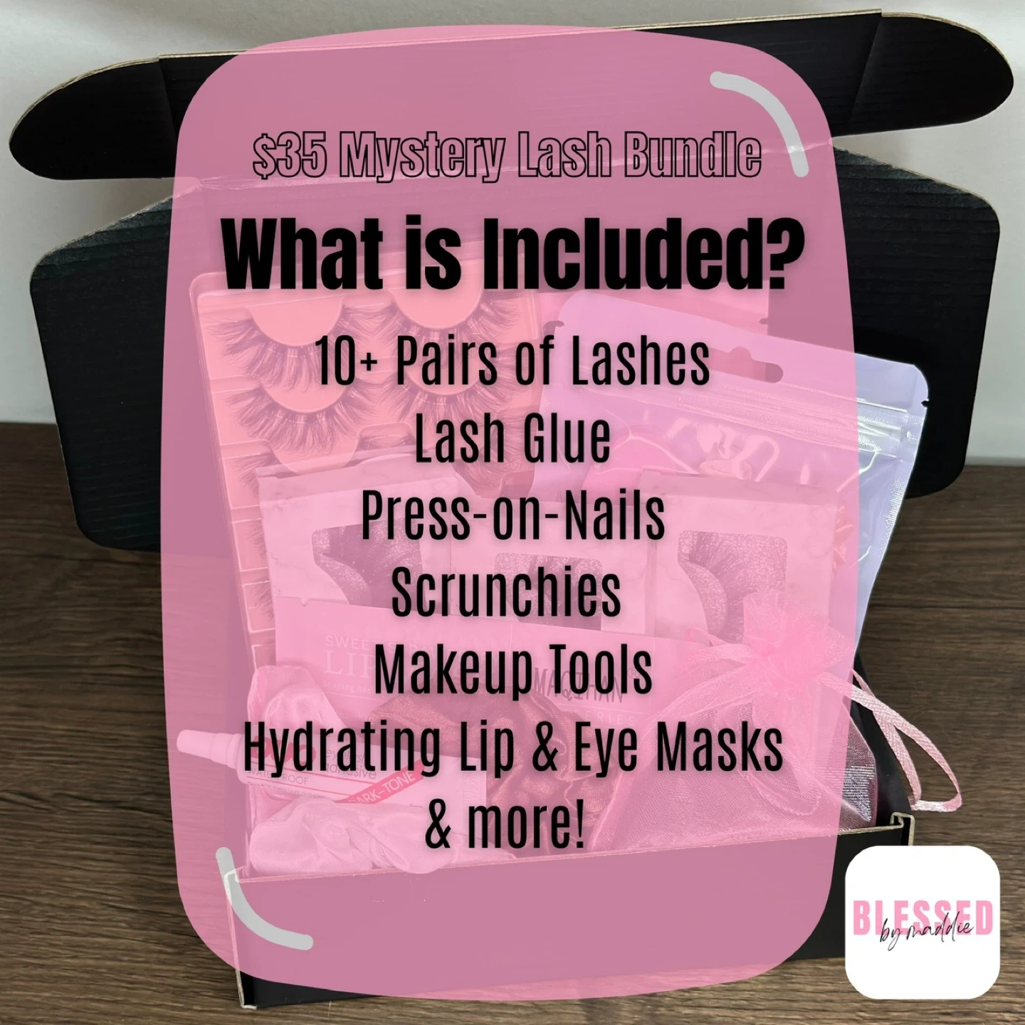 ✨ $35 MYSTERY LASH BOX ✨ 🎀 What’s Included: • 10+ Pairs of Blessed By Maddie Lashes • Lash Glue • Scrunchies + Cute Accessories • Makeup Tools • Surprise Beauty Extras • FREE Delivery in Winnipeg! 💗Message now to grab yours! @Blessed By Maddie – Facebook @blessed_bymaddie – Instagram