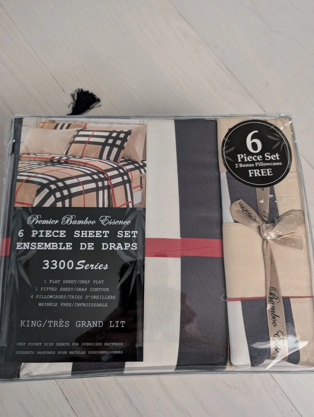6 Piece Sheet Set, King/Tres Grand Lit. Deep pocket sizes for oversized mattresses. Wrinkle free/infroissable. 2 bonus pillowcases free.