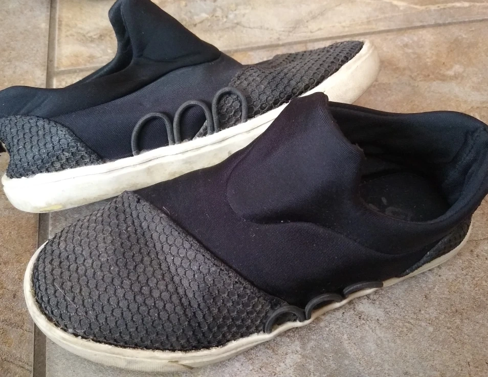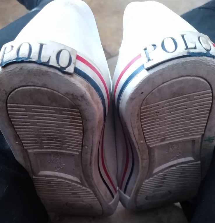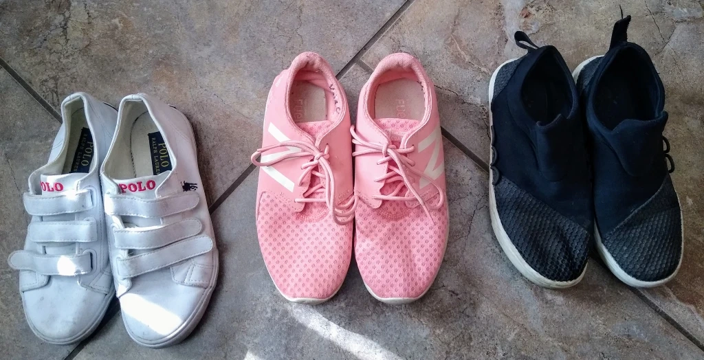 Three pairs of running shoes available (all kid's size 2) 1. White Polo by Ralph Lauren with velcro closures and embroidered logo. $20 or best offer 2. Pink New Balance lace-up in excellent condition. $25 or best offer 3. Black slip-ons made by Justice. $15 or best offer