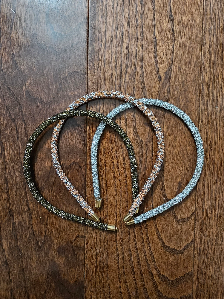 3 for $3 Glitter headbands silver, black , rust