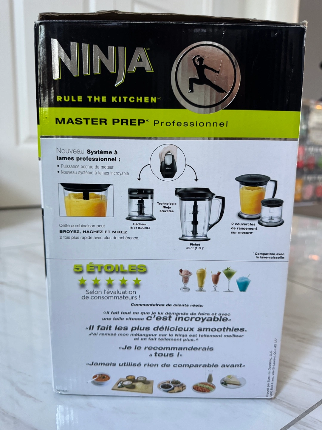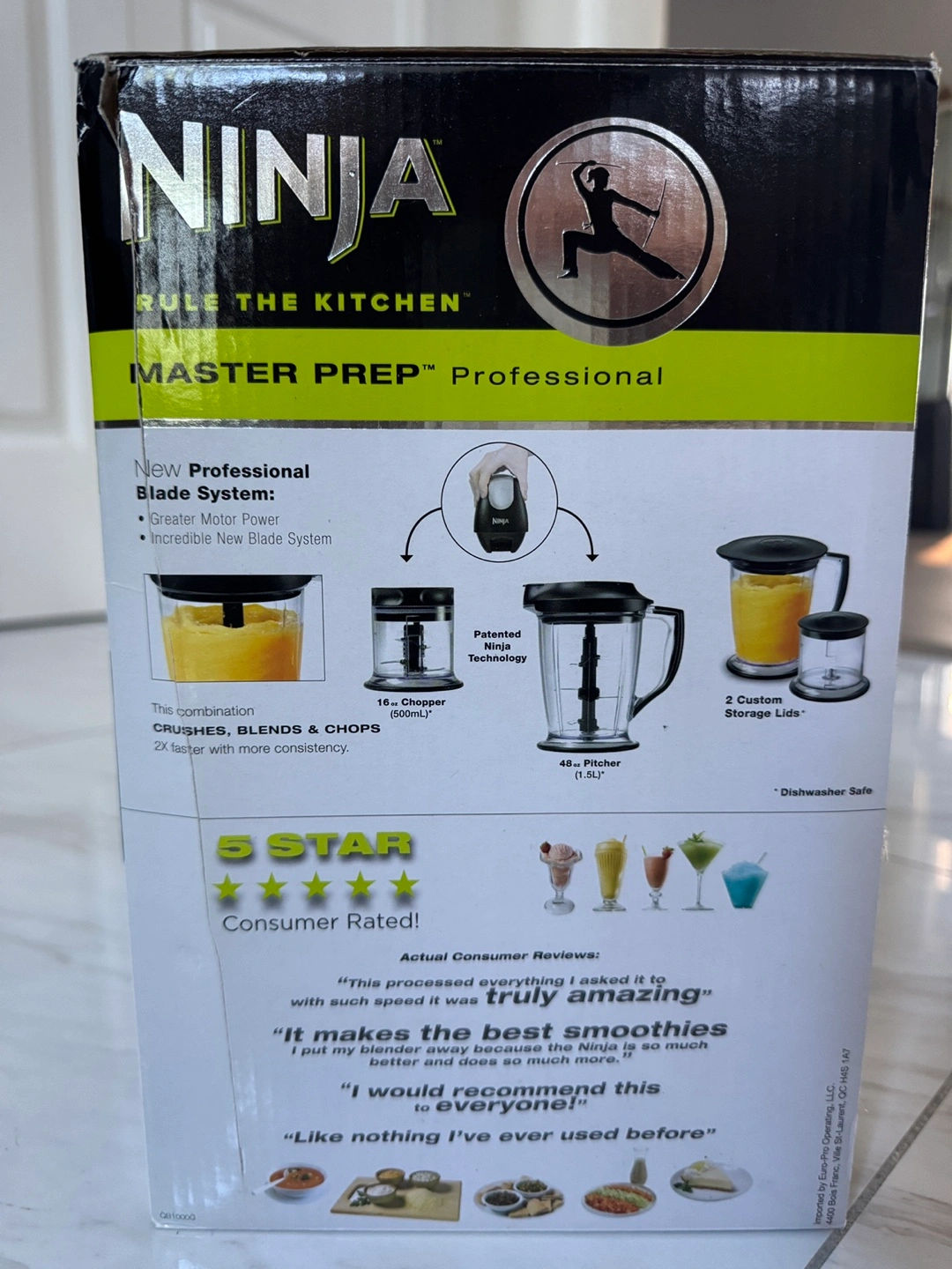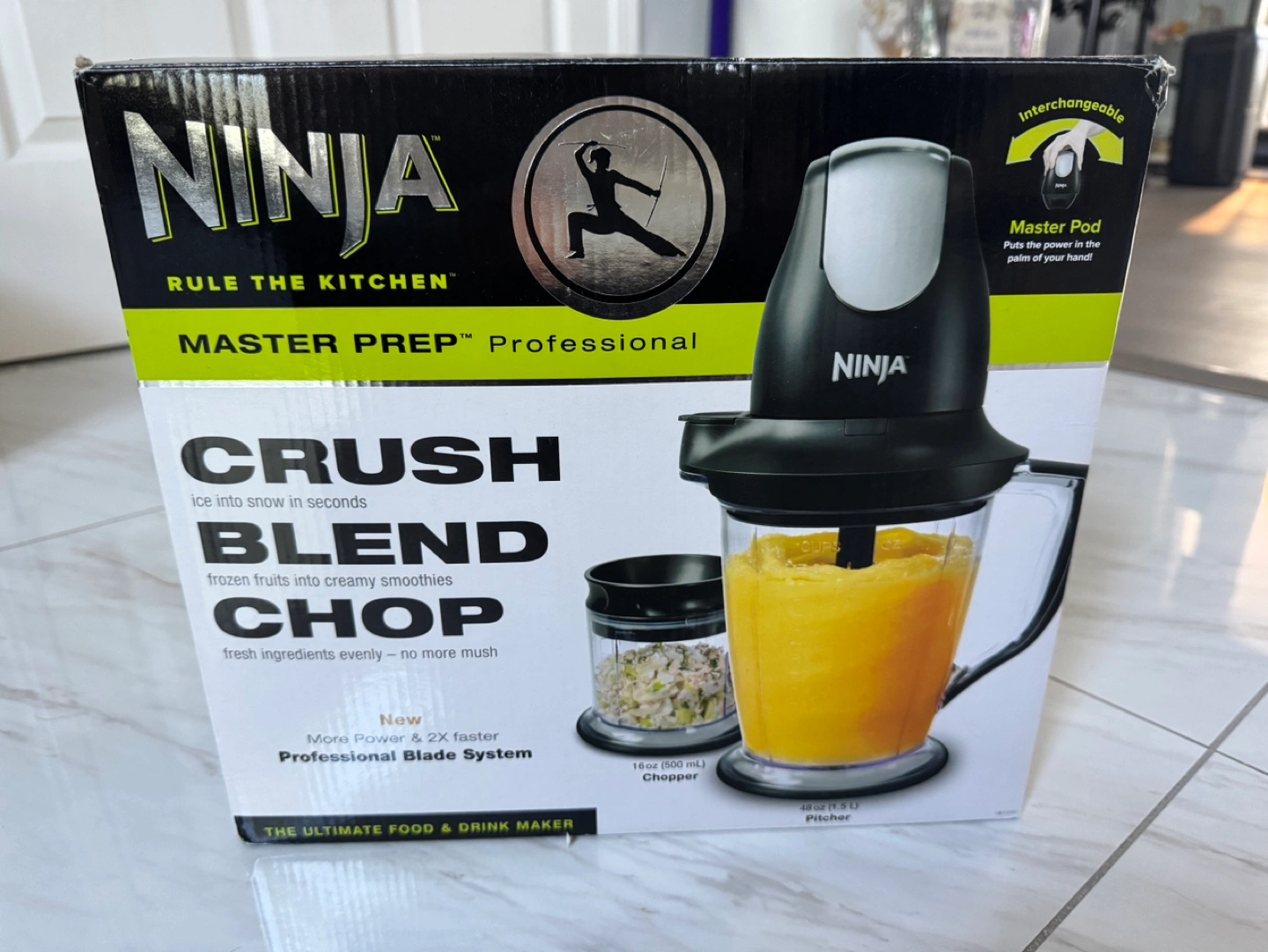 New professional blade system. Crush ice, blend smoothies, and chop fresh ingredients. Includes a 48 oz pitcher and a 16 oz chopper.
