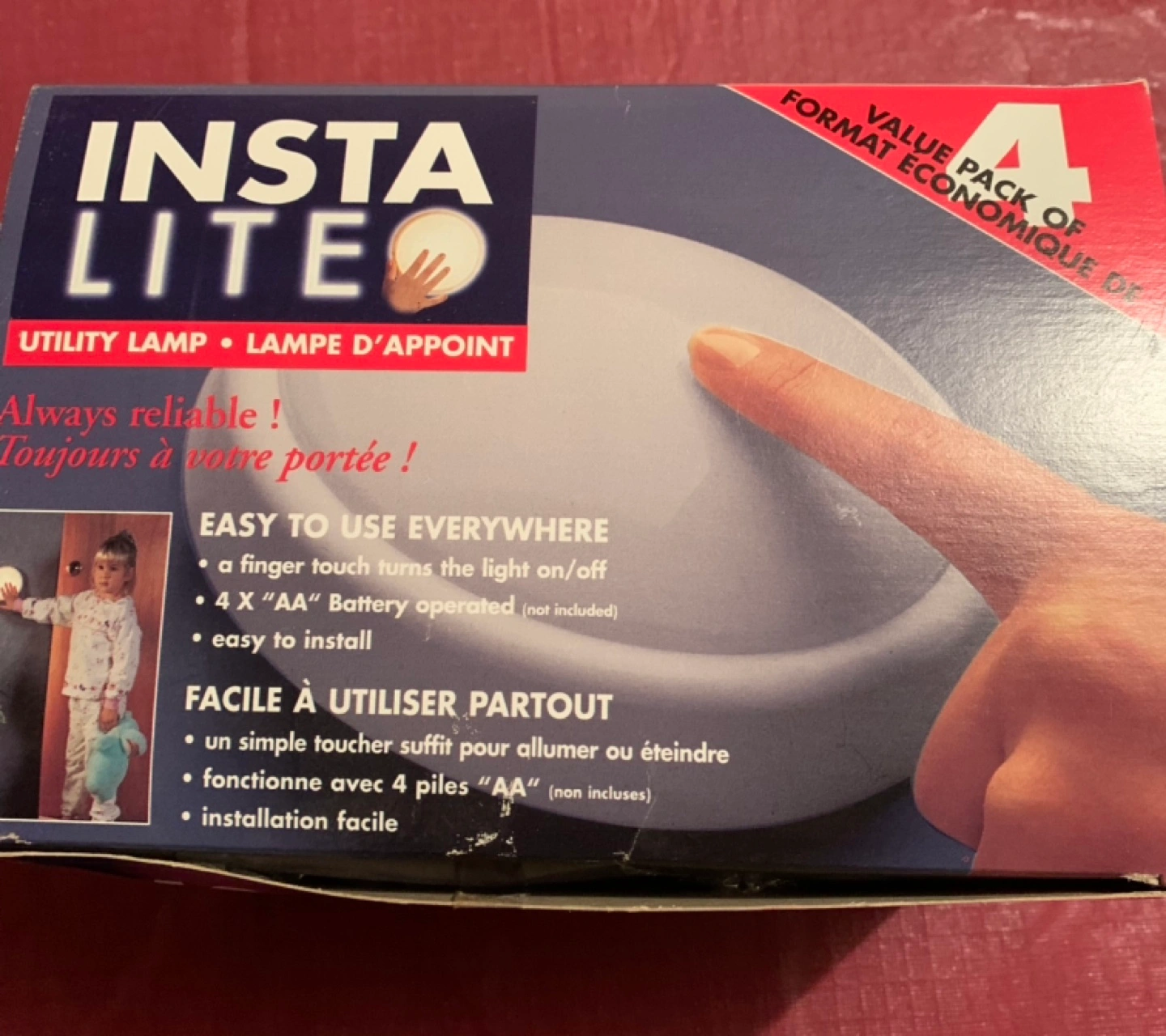 Set of 4 portable lamps/lights Four battery-operated utility lamps. Easy to install and use. Great for closets, garages, etc. Requires 4 AA batteries (not included). NEW - in sealed packages Moving sale - smoke free & pet free household