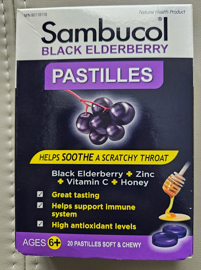20 soft & chewy pastilles. Helps soothe a scratchy throat. Great tasting. Helps support immune system. High antioxidant levels. Ages 6+ BB: Mar 2026 Pick up only @ McMahon drive near North York Ikea